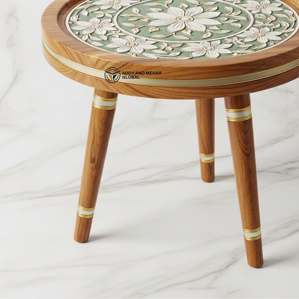 เก้าอี้ไม้สีแดงมีนา งานแฮนด์เมดทรงกลม สไตล์อินดัสเทรียล ตกแต่งด้วยลวดลายเพ้นท์มือ เหมาะสำหรับห้องนอนและทางเข้าบ้าน