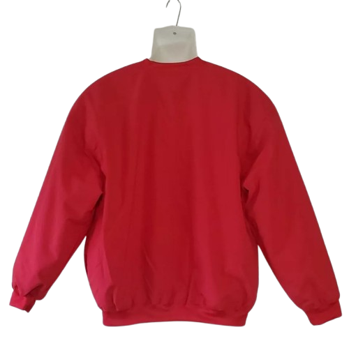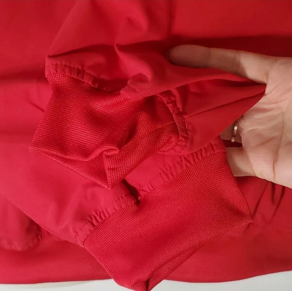 เสื้อแจ็คเก็ตผู้ชายสีแดงแบบสปอร์ต คอวี ผ้าแคนวาส ปักลาย กันลม กันน้ำ แห้งเร็ว ระบายอากาศได้ดี