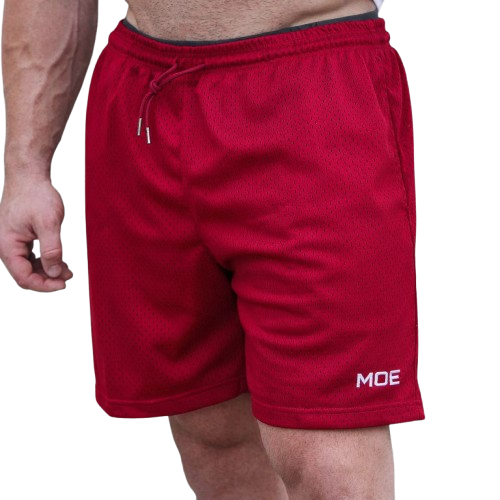 กางเกงบาสเก็ตบอลตาข่ายสีแดงสำหรับผู้ชาย ยางยืดปรับได้ ชุดฝึกซ้อมทีมกีฬา ผลิตตามสั่งจำนวนมากแบบ OEM