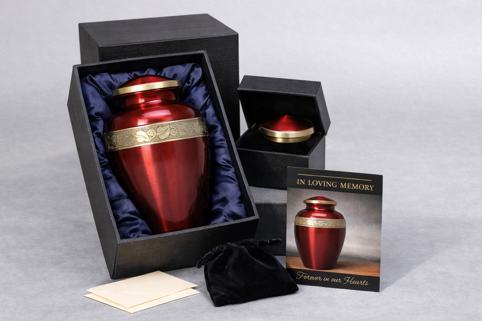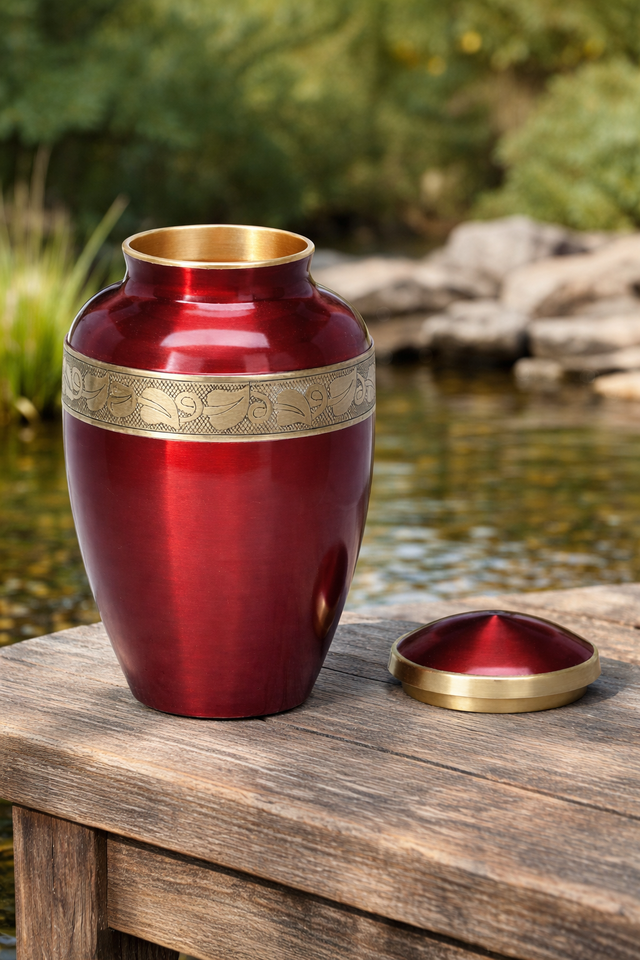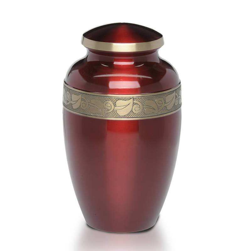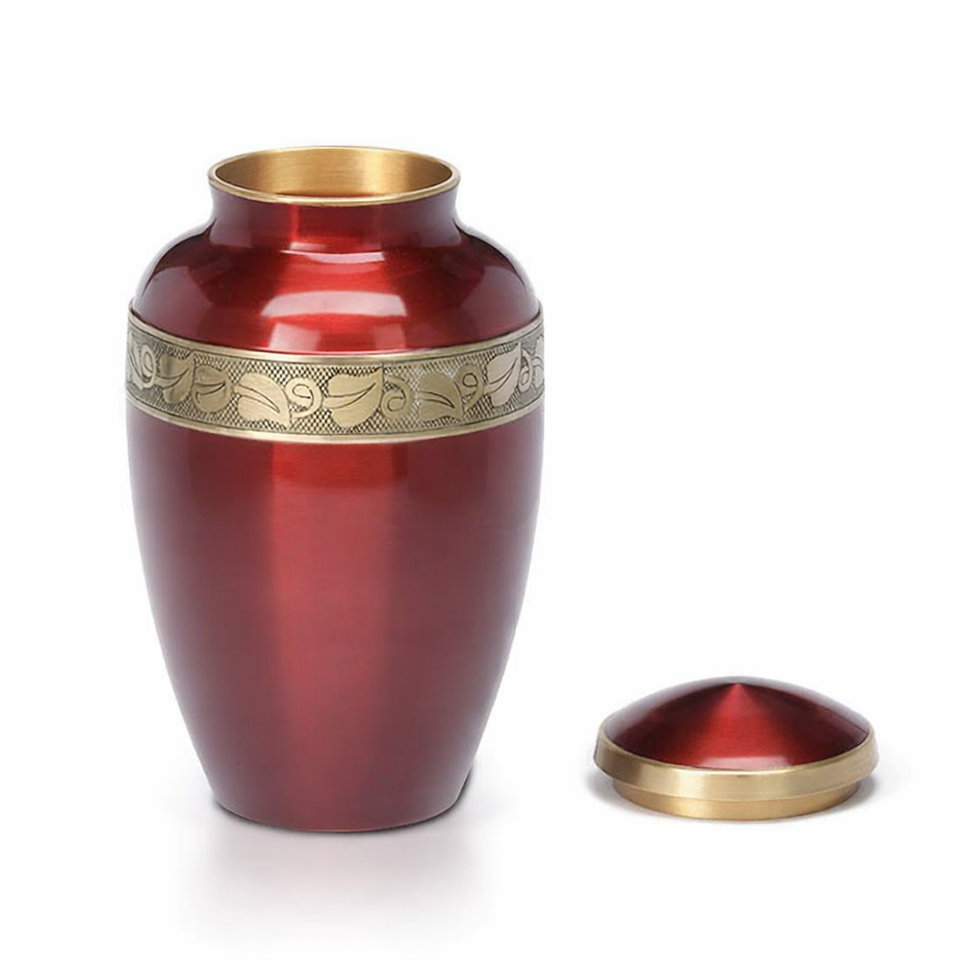 โกศเผาศพโลหะสีแดงสไตล์ยุโรปสำหรับขี้เถ้าของมนุษย์ประดับด้วยทองคำสำหรับงานศพผู้ใหญ่