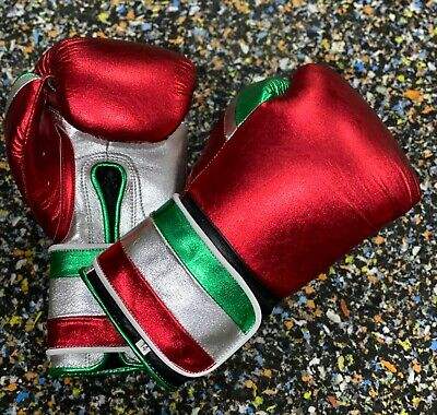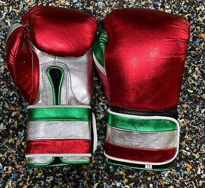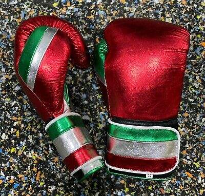 ถุงมือชกมวยหนังวัวแท้สีเขียวมุกเมทัลลิกแดง แบบสั่งทำพิเศษ ยืดหยุ่นได้ สำหรับฝึกซ้อมมืออาชีพ ปิดแบบผูกเชือก