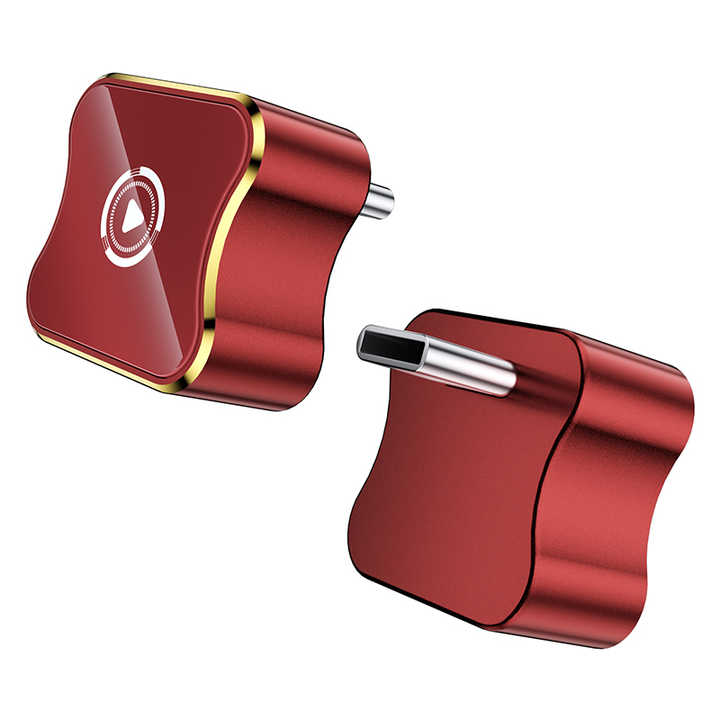 อะแดปเตอร์ CarPlay ขนาดเล็กสีแดงแบบ2อิน1ปรับแต่งได้พอร์ต USB แบบมีสายเป็น CarPlay ไร้สายและ Android Auto dongle