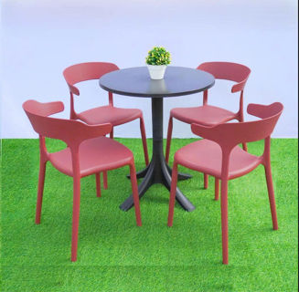 เก้าอี้พลาสติกสีแดงทันสมัย ทนทาน นั่งสบาย ขนาดกะทัดรัด เหมาะสำหรับรับประทานอาหารกลางแจ้งในสวนและงานปาร์ตี้ในลานบ้าน