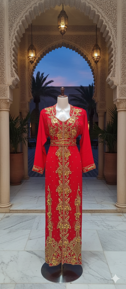 ชุดเดรสยาวแบบมุสลิมสีแดงสไตล์โมร็อกโก หรูหรา สง่างาม ทำมือประดับด้วยลูกปัดหิน ดีไซน์สั่งทำพิเศษ ป้องกันไฟฟ้าสถิตย์ ปี 2026