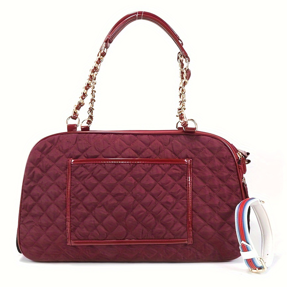 กระเป๋าถือพกพาสำหรับสัตว์เลี้ยงทำจากไนลอนสีแดงน้ำหนักเบาและทนทานสำหรับแมวและสุนัขขนาดเล็ก