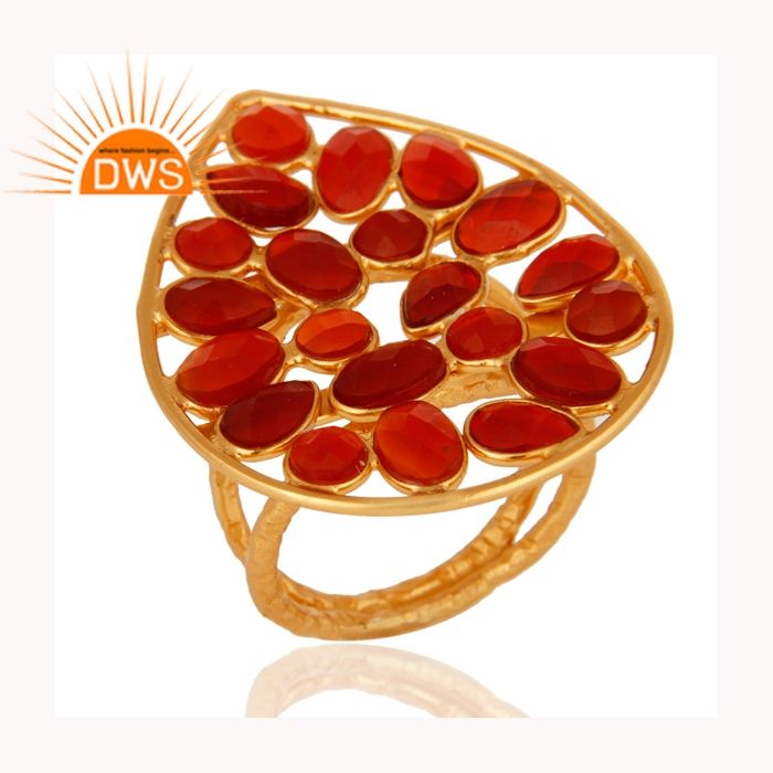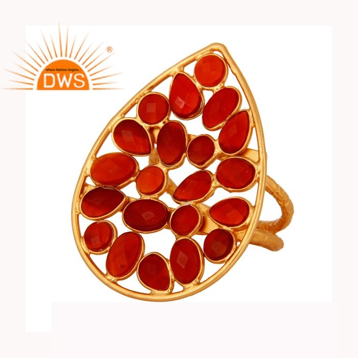 แหวนค็อกเทลรูปทรงลูกแพร์ประดับพลอยออนิกซ์สีแดง เงินสเตอร์ลิงชุบทองคำขาว แหวนแต่งงานทำมือ