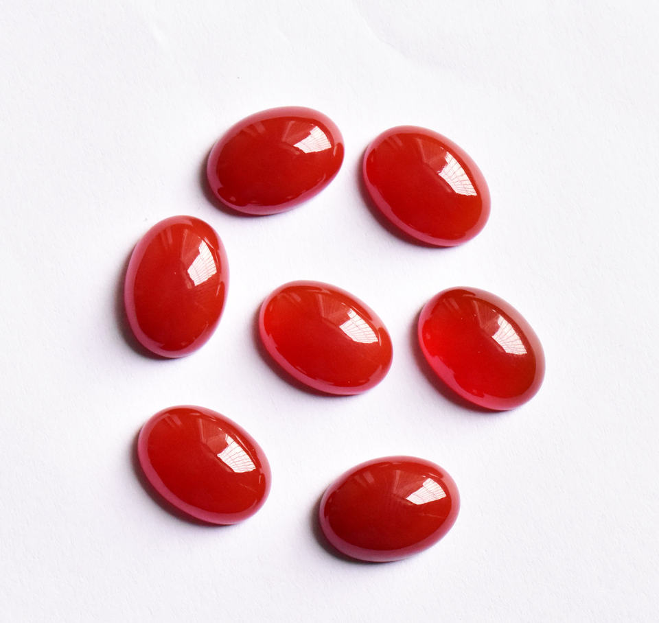 อัญมณีทรงหลังเบี้ยทรงรีเทียบรูปวงรีสีแดงโอนิกซ์สำหรับเครื่องประดับสร้อยคอจี้สร้อยคอขนาด5X3มม. ถึง20X15มม. สีแดง