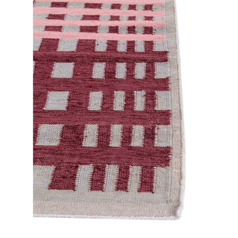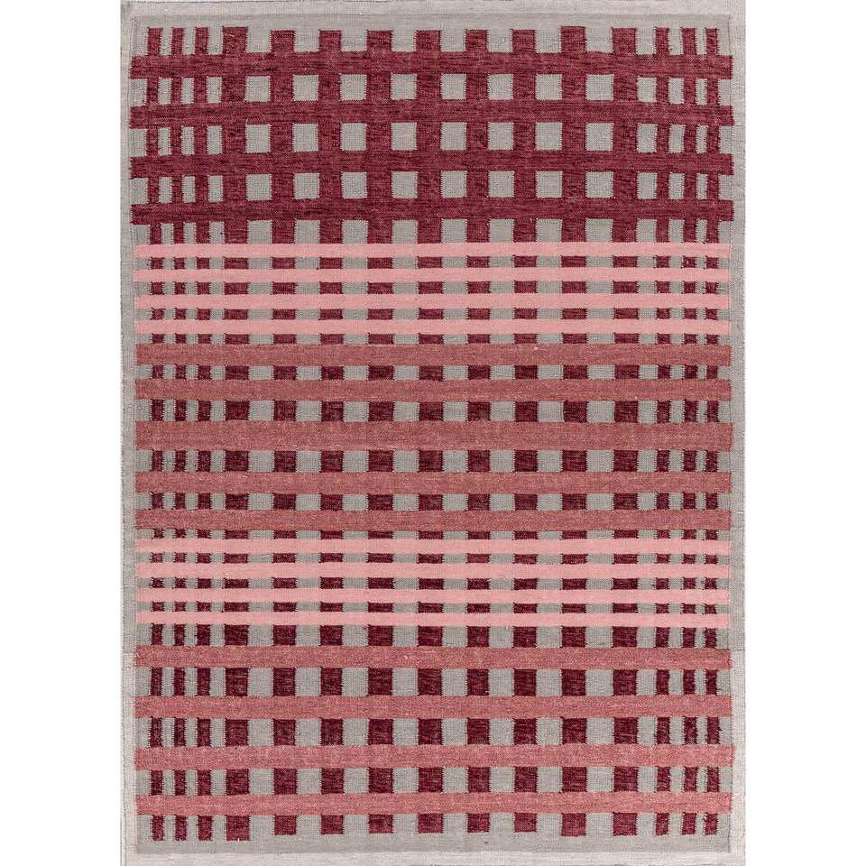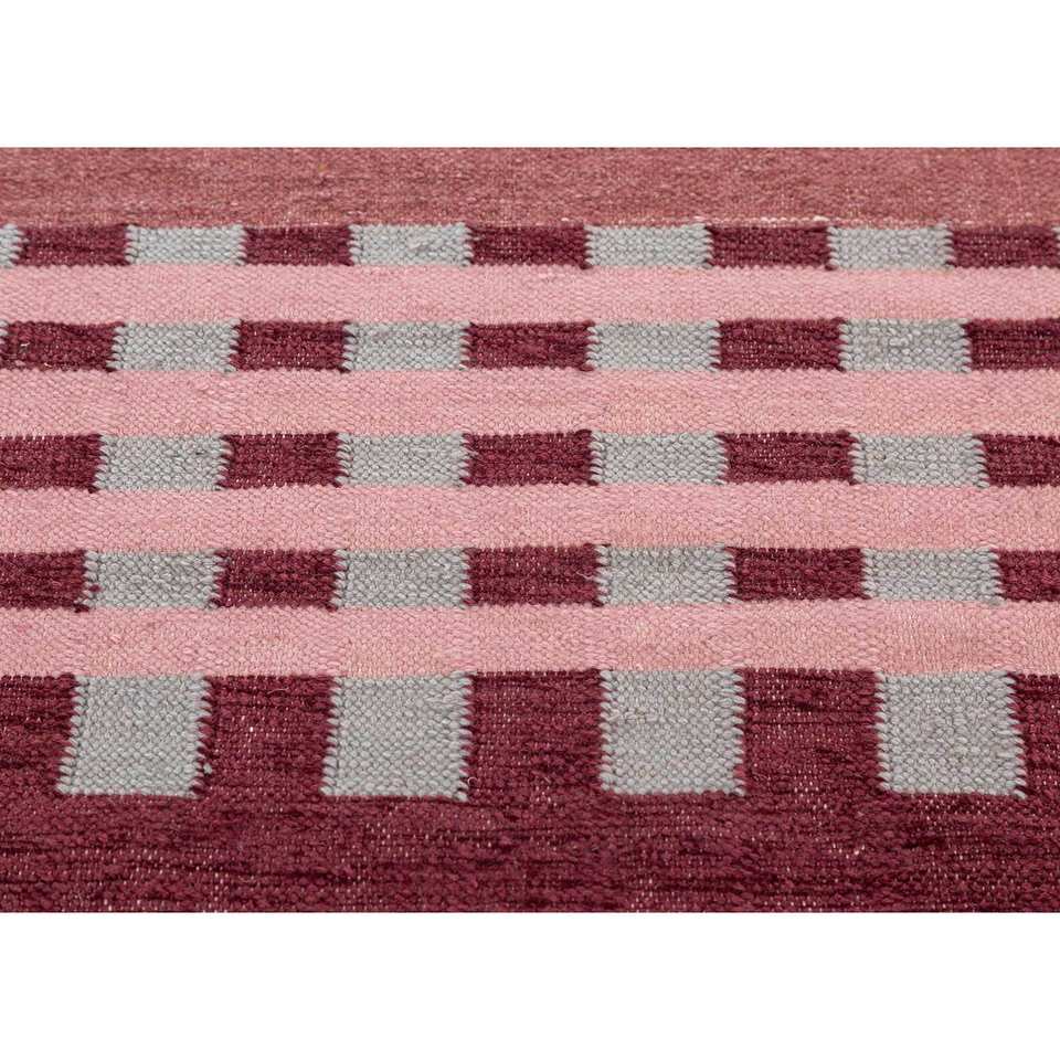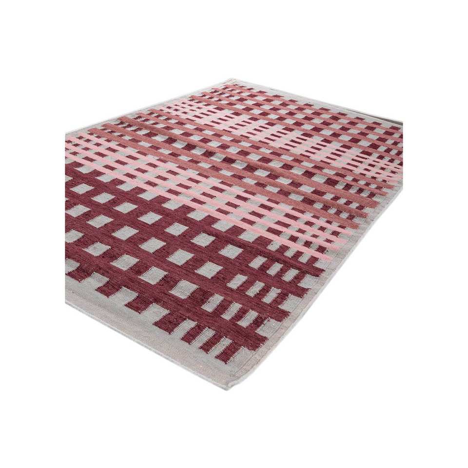 Red & Orange Geometric Pattern Flat Weave Wool & Viscose Rugs Checkers Adwv-13068 for Home Use