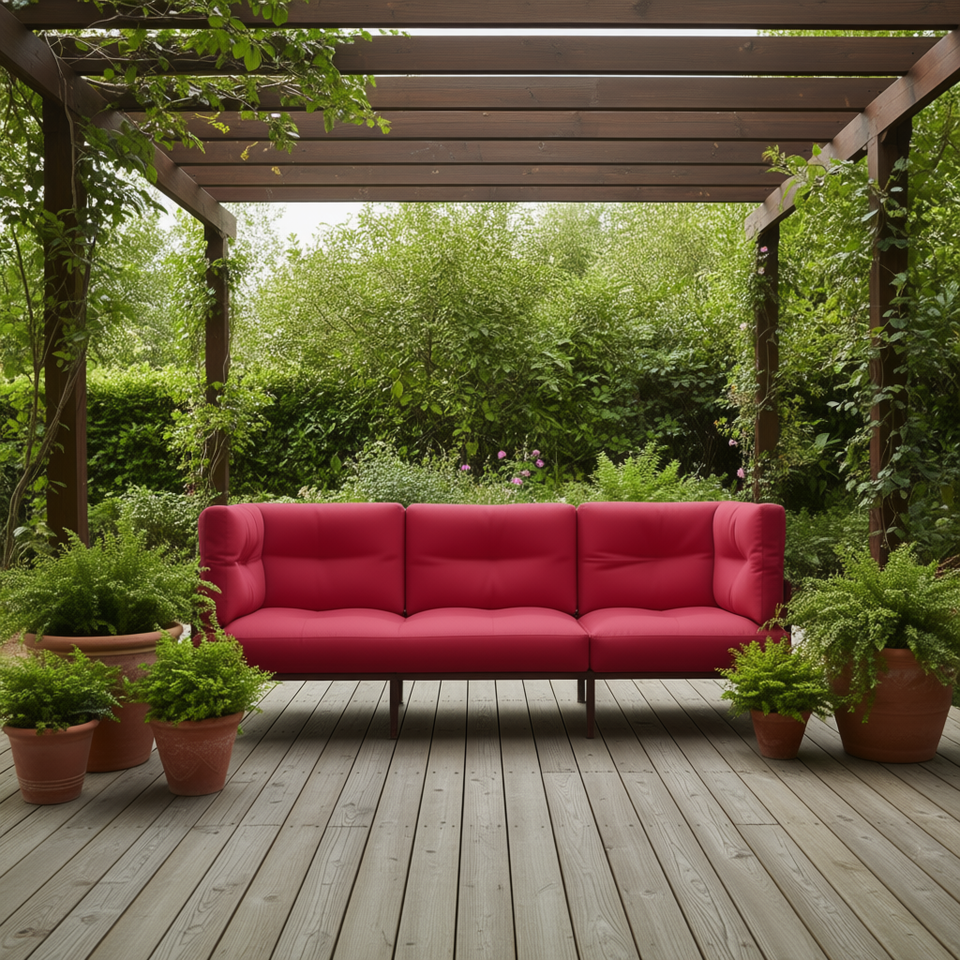 ชุดหมอนอิงกลางแจ้งสีแดง 3 ชิ้น ผ้าโพลีเอสเตอร์ 100% กันน้ำ หมอนอิงทรงสี่เหลี่ยมผืนผ้าสำหรับเฟอร์นิเจอร์ลานบ้าน ใช้ได้ทุกฤดู