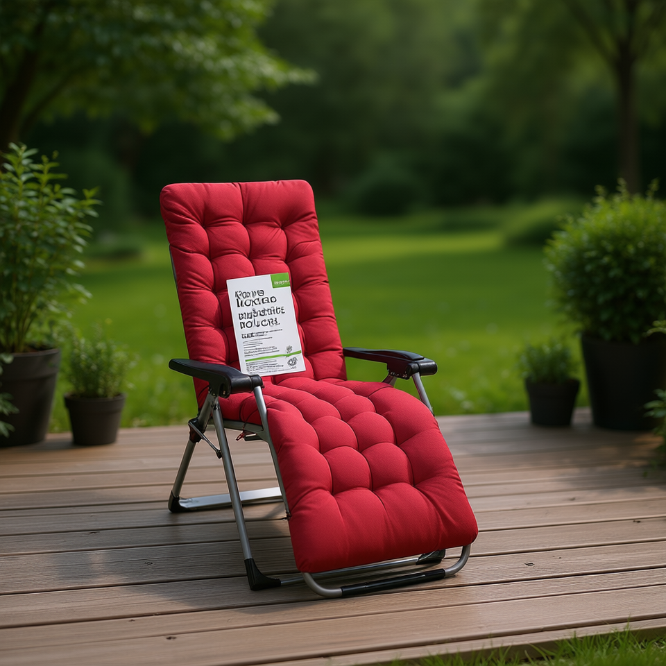 เบาะรองนั่งเก้าอี้เอนนอนกลางแจ้งสีแดง ผ้าโพลีเอสเตอร์แบบเย็บติดกัน ถอดซักได้ ใช้ได้ทุกฤดู