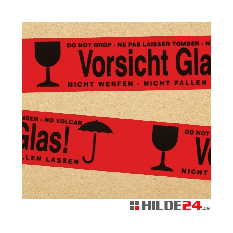 เทปเตือนภัย PVC สีแดง ขนาด 50 มม. x 66 ม. แบบม้วน วัสดุ HDPE พิมพ์ลายสีดำ "ระวังกระจก"