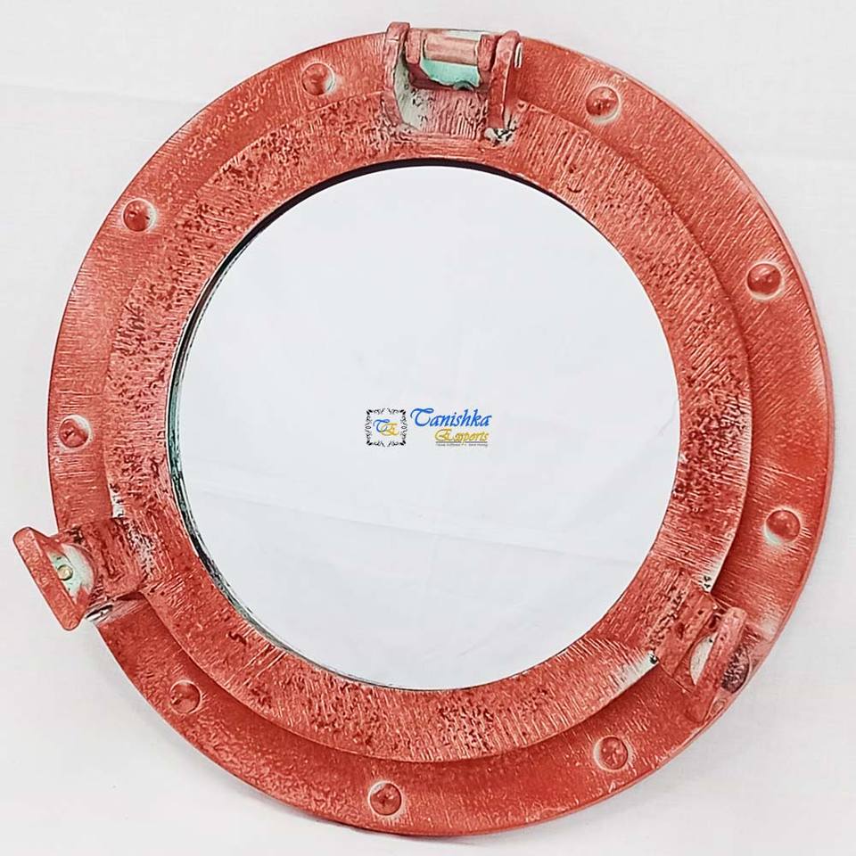 สีแดงPatinaโบราณอลูมิเนียมPortholeเดินทะเลหน้าต่างPortholeโลหะหัตถกรรมรอบเรือเรือตกแต่งPorthole