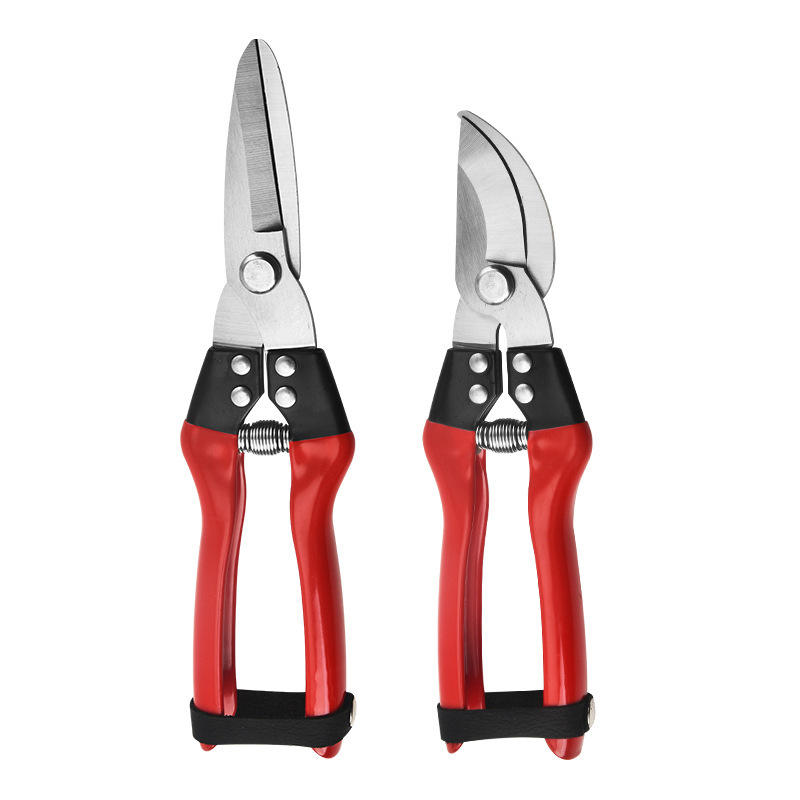 กรรไกรตัดแต่งกิ่งแบบมีดโกน ด้ามจับพลาสติกสีแดง ใบมีดสแตนเลส เครื่องมือทำสวนแบบใช้มือสำหรับตัดแต่งกิ่งไม้