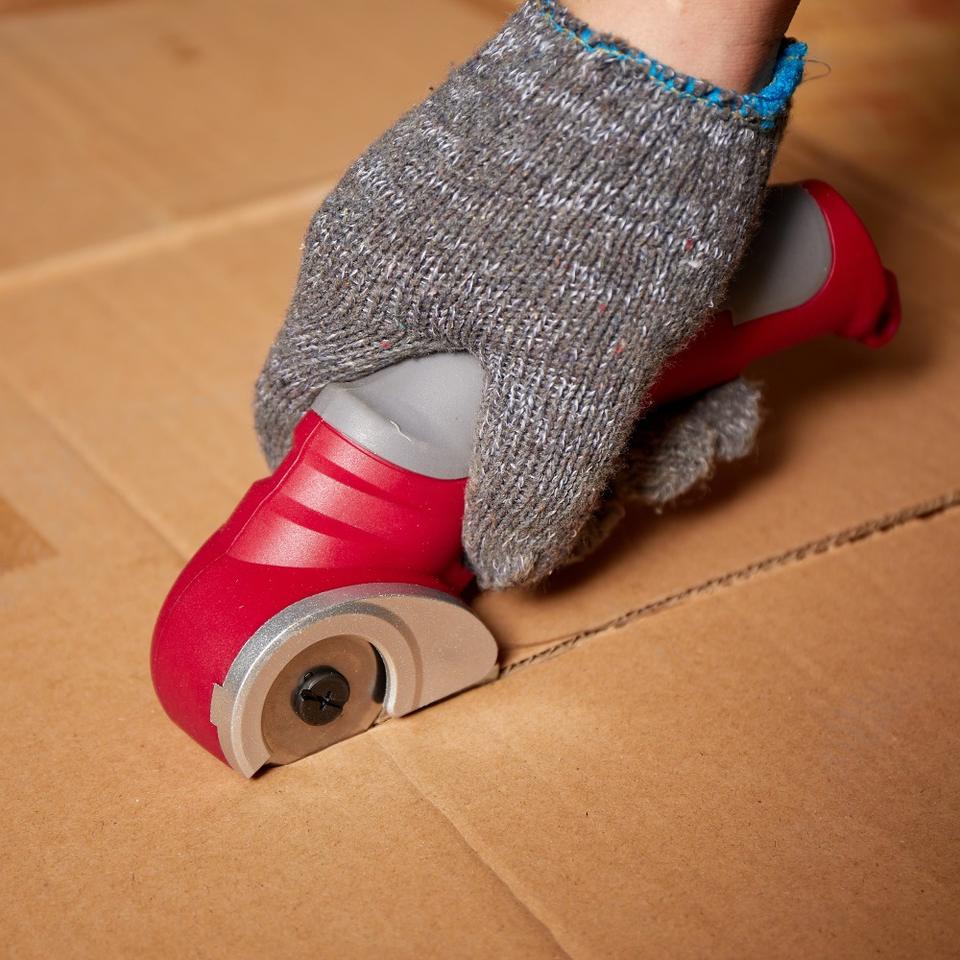 กรรไกรไฟฟ้าในครัวเรือนพลาสติกสีแดง ใบมีดสแตนเลส 4V ลิเธียมไอออน สำหรับตัดพรม GX-LES01