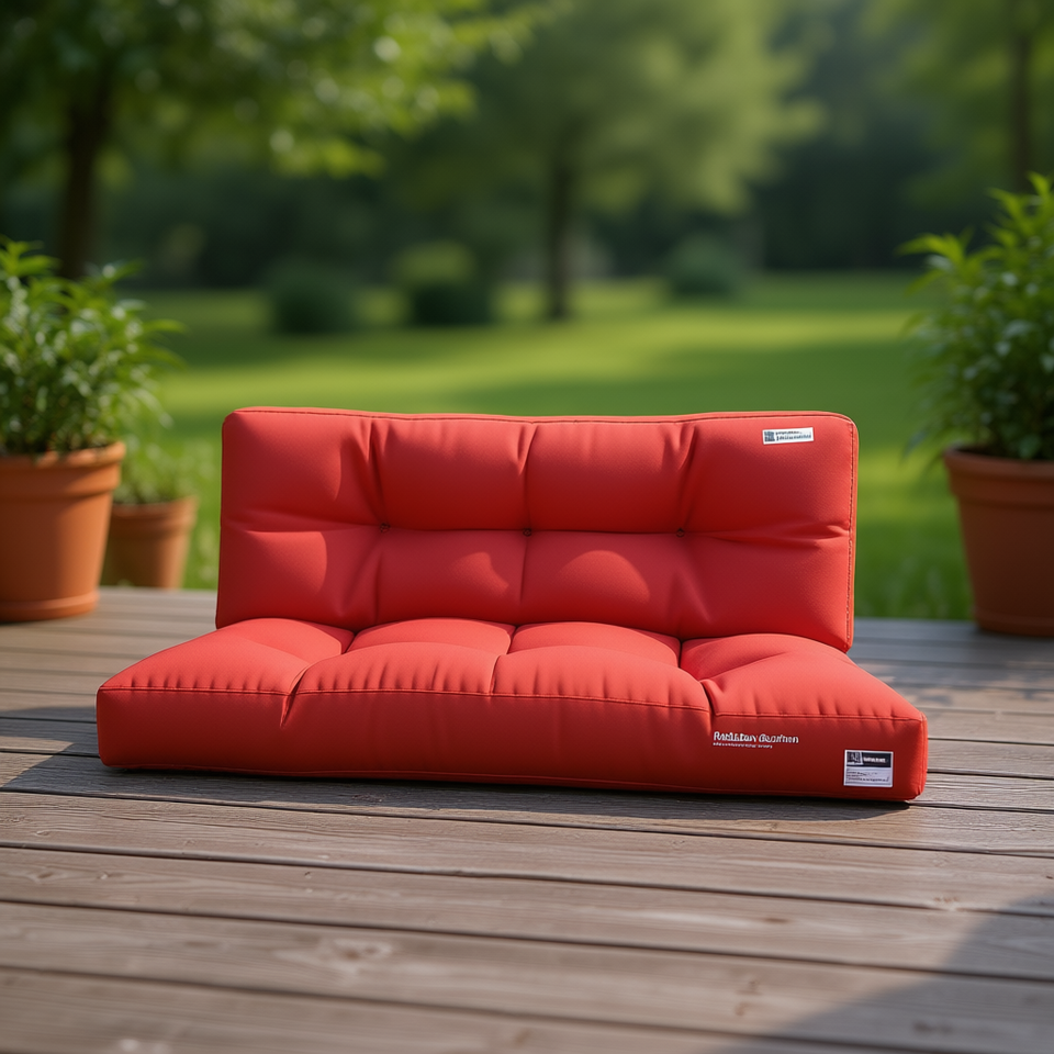 เบาะรองนั่งกลางแจ้งโพลีเอสเตอร์สีแดง กันน้ำ รูปทรงสี่เหลี่ยม สีพื้น ใช้ได้ทุกฤดู บุด้วยใยโพลีเอสเตอร์ 100%