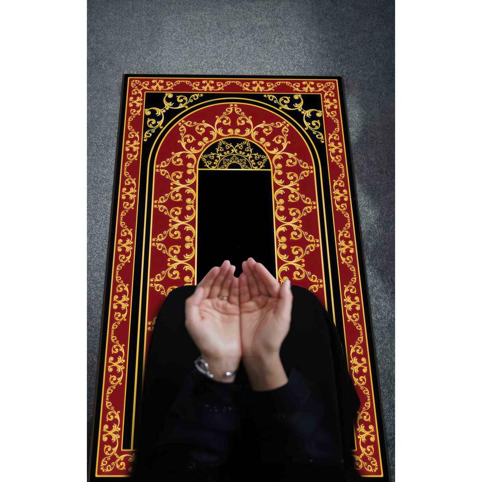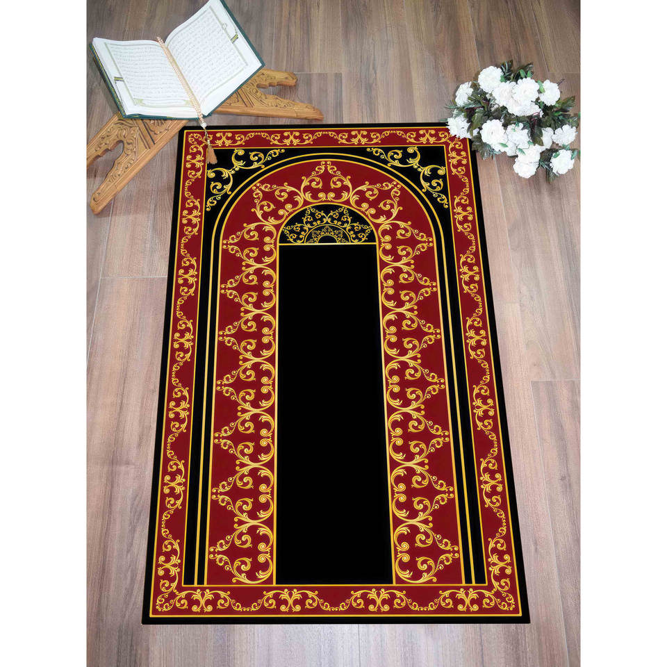 พรมละหมาดสีแดง: พรมสำหรับการละหมาดที่หรูหรา ตกแต่งมัสยิด พร้อมพรมขนนุ่ม