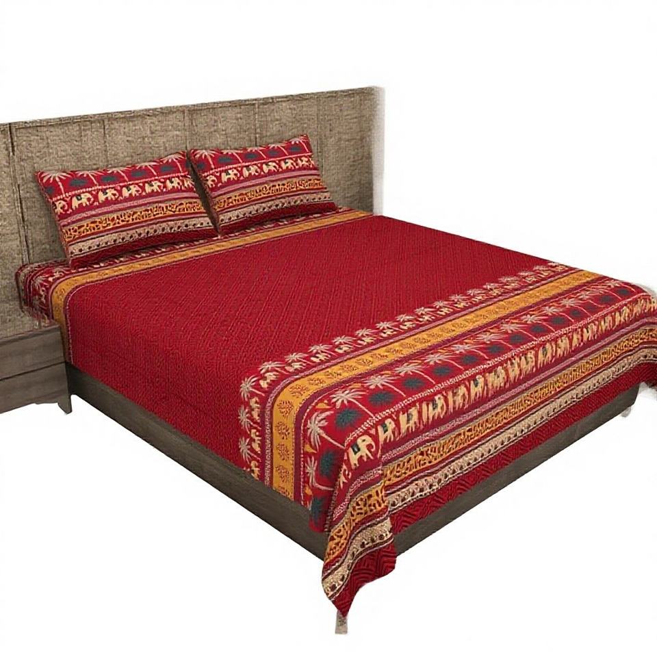 ผ้าปูที่นอนสีแดงพิมพ์ลายสไตล์คลาสสิกและวินเทจ พร้อมปลอกหมอน 2 ใบ ผ้าฝ้าย 100% 300 เส้นด้าย ชุดเครื่องนอนรักษ์โลกสไตล์ธรรมชาติ