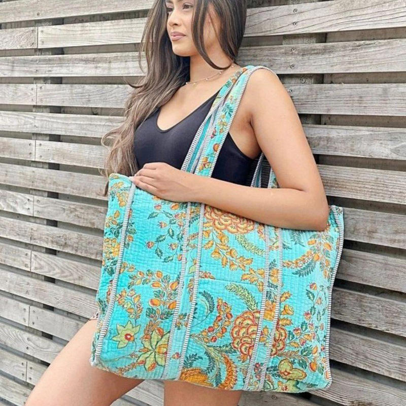 กระเป๋าผ้าฝ้ายสีแดงลายสัตว์ป่าซาฟารี กระเป๋าสะพายไหล่แบบใช้ซ้ำได้ กระเป๋าเดินทางชายหาด กระเป๋าช้อปปิ้ง