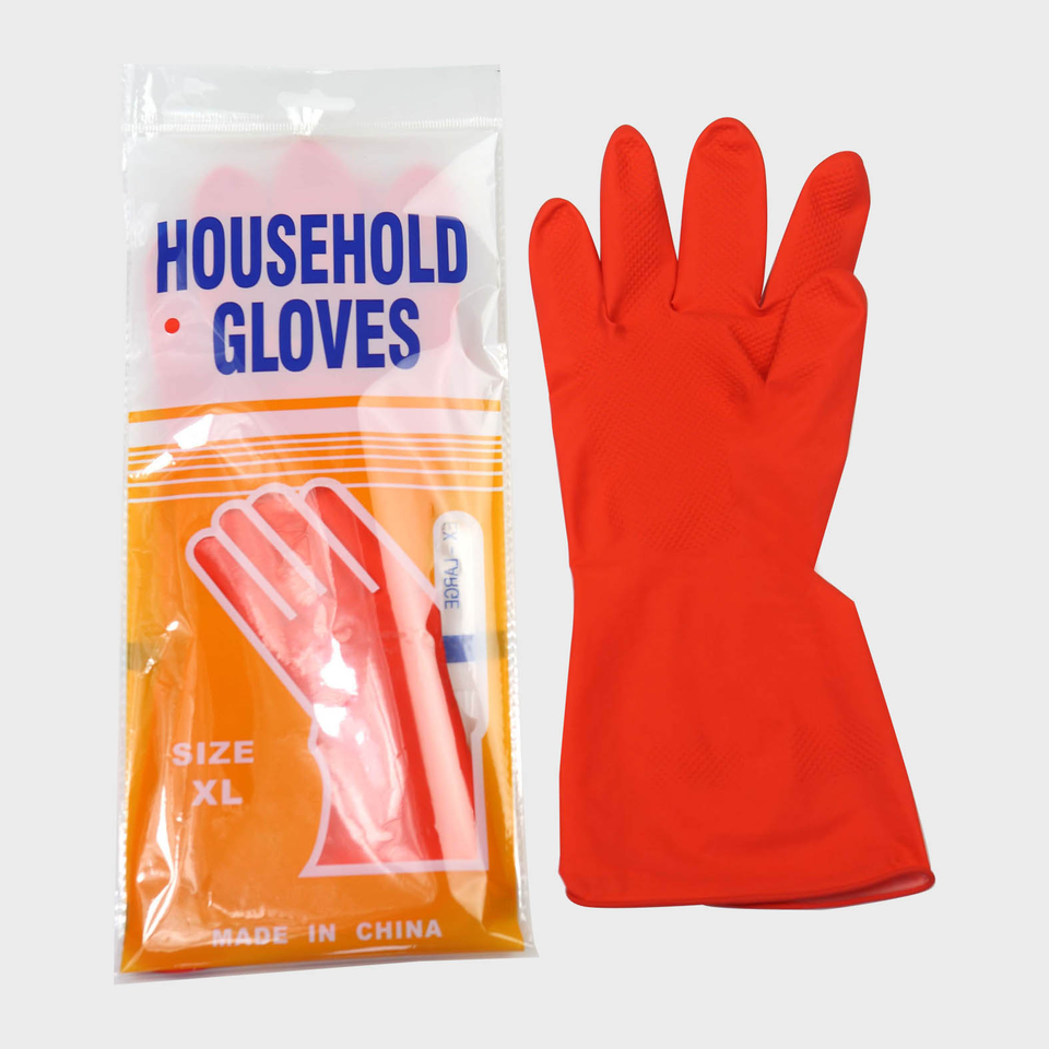 ถุงมือยางล้างจานแบบหนาใช้ซ้ำได้ถุงมือยางสำหรับใช้ในครัวเรือนงานครัวสีแดง