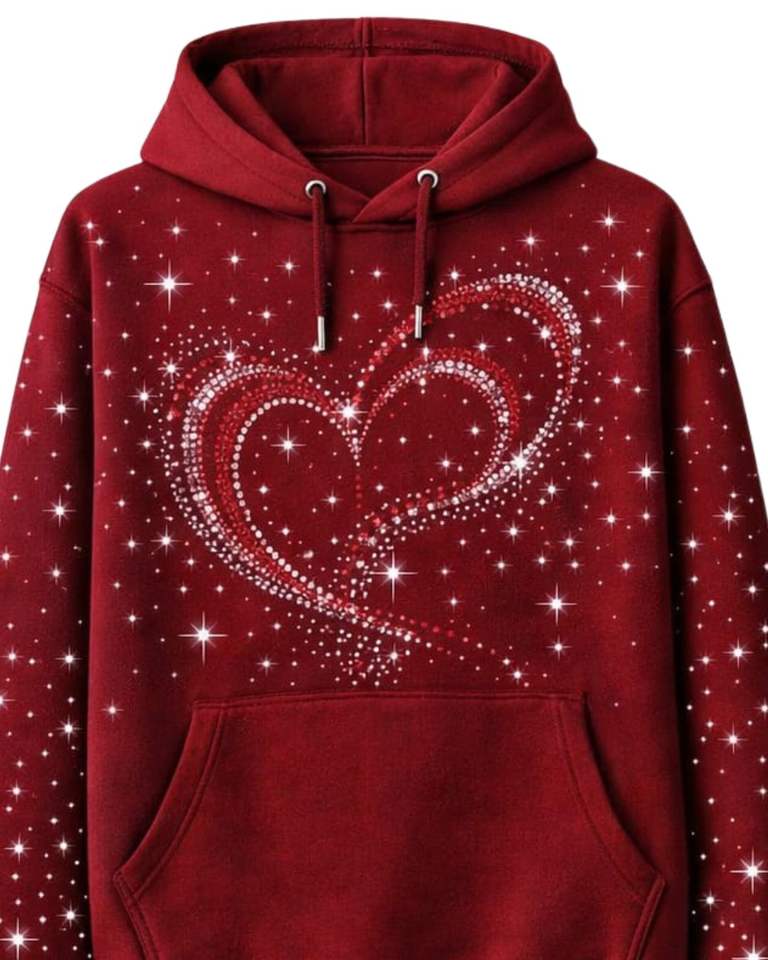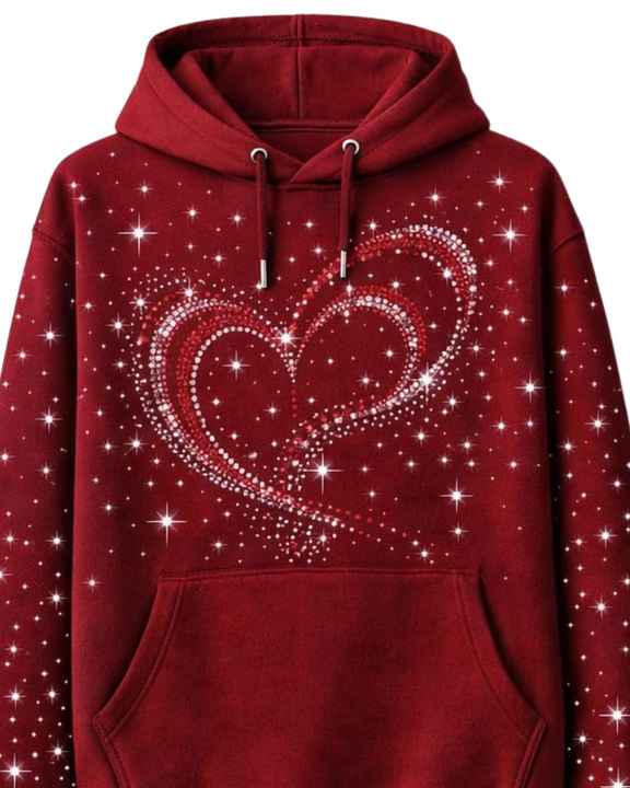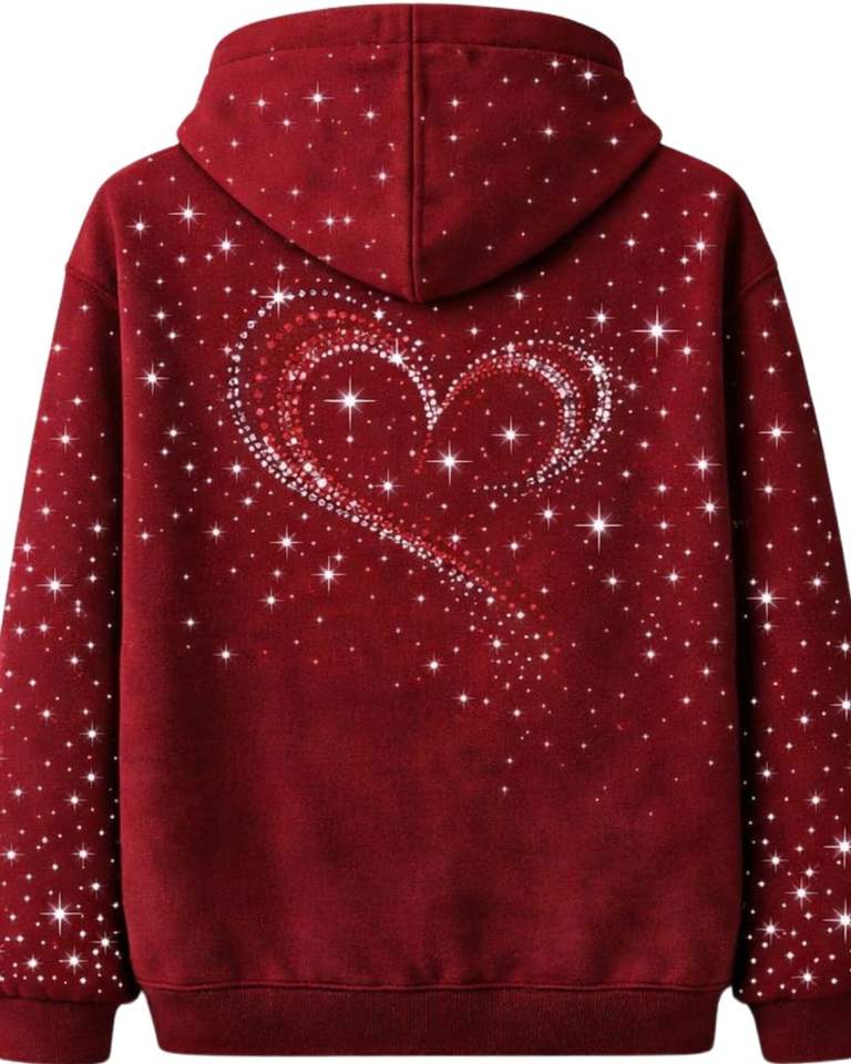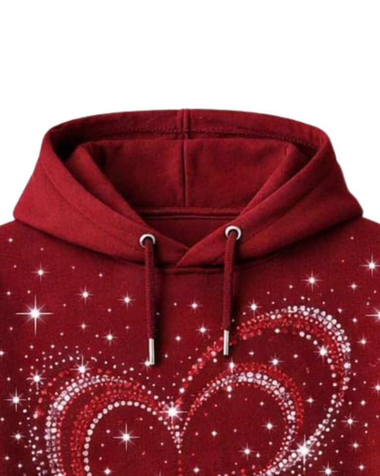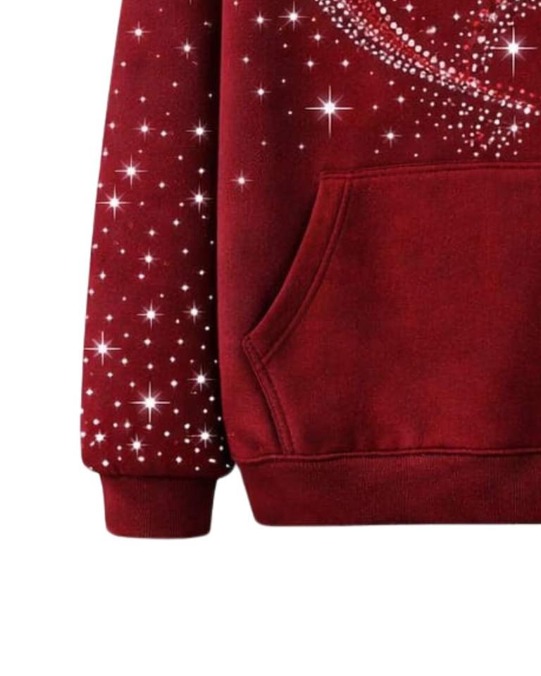 เสื้อฮู้ดดี้สีแดงประดับเพชรรูปหัวใจ ทรงโอเวอร์ไซส์ ผ้าฟลีซหนานุ่ม มีกระเป๋าจิงโจ้ ผลิตเสื้อผ้าสตรีทแวร์ตามสั่งสำหรับผู้ชาย