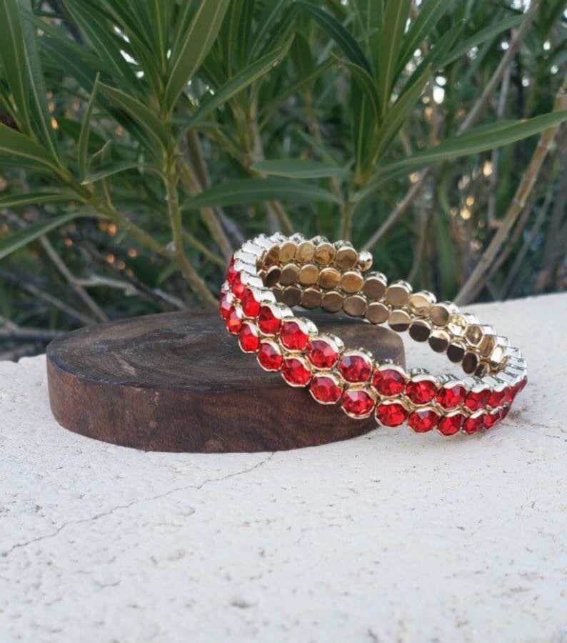ชื่อผลิตภัณฑ์:สร้อยข้อมือพลอยเทียมสีแดง