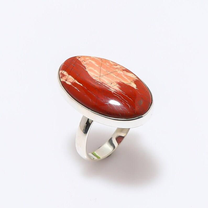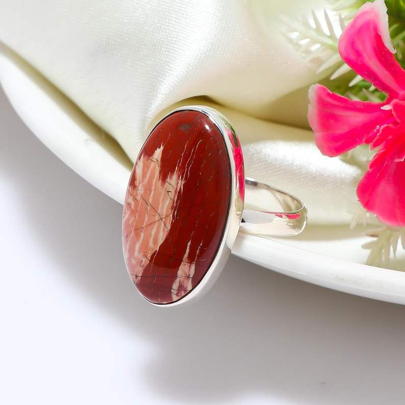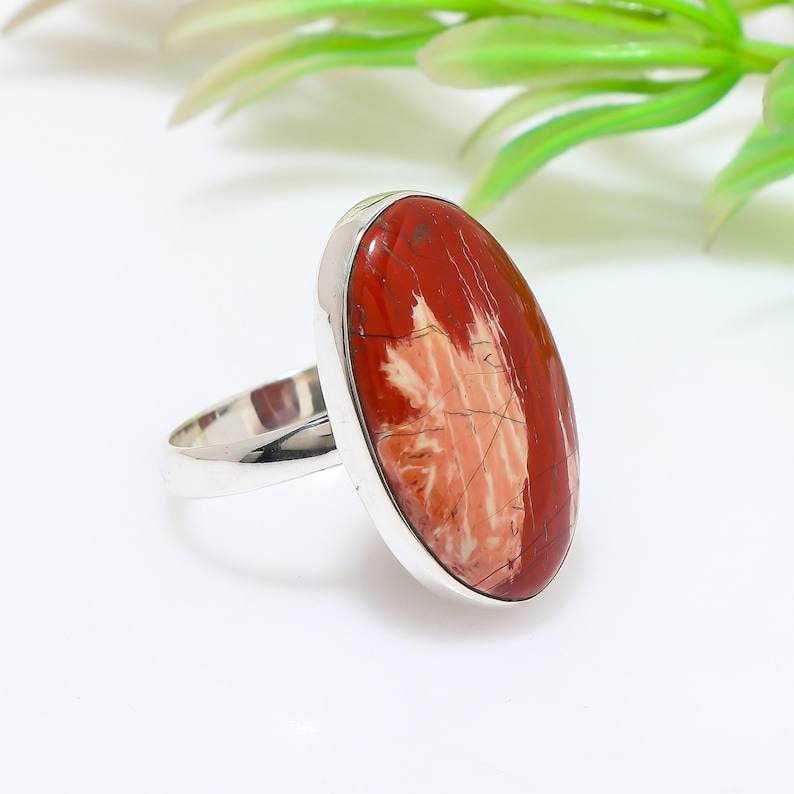 925พลอยแจสเปอร์แม่น้ำแดงแหวนเงินแท้แฮนด์เมดของขวัญไม่เหมือนใครพร้อมหินสีขาวสำหรับผู้หญิง