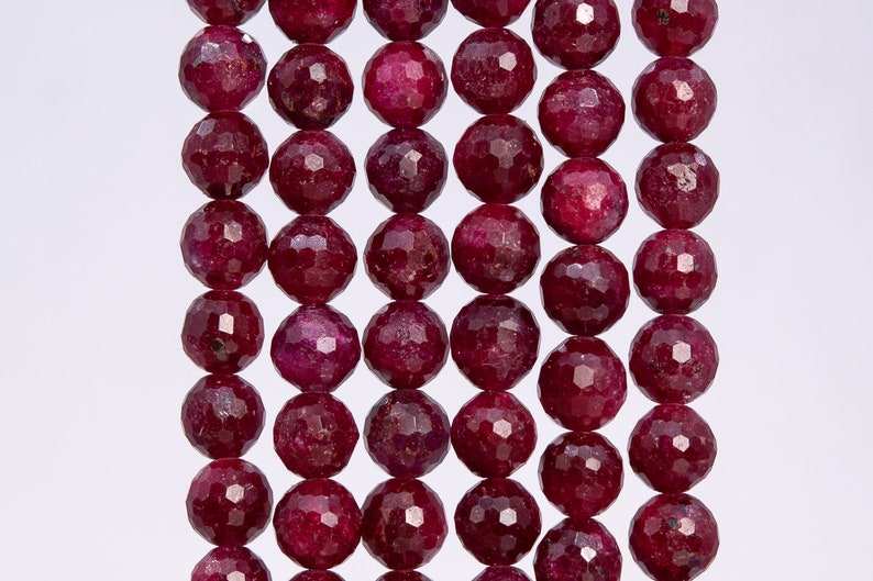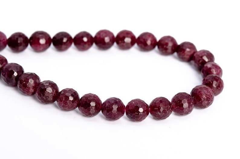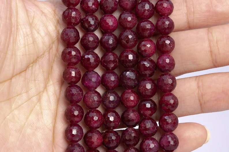 ลูกปัดทับทิมสีแดงทรงกลมเจียระไนละเอียด สำหรับทำเครื่องประดับ สร้อยข้อมือ สร้อยคอ งานฝีมือ DIY