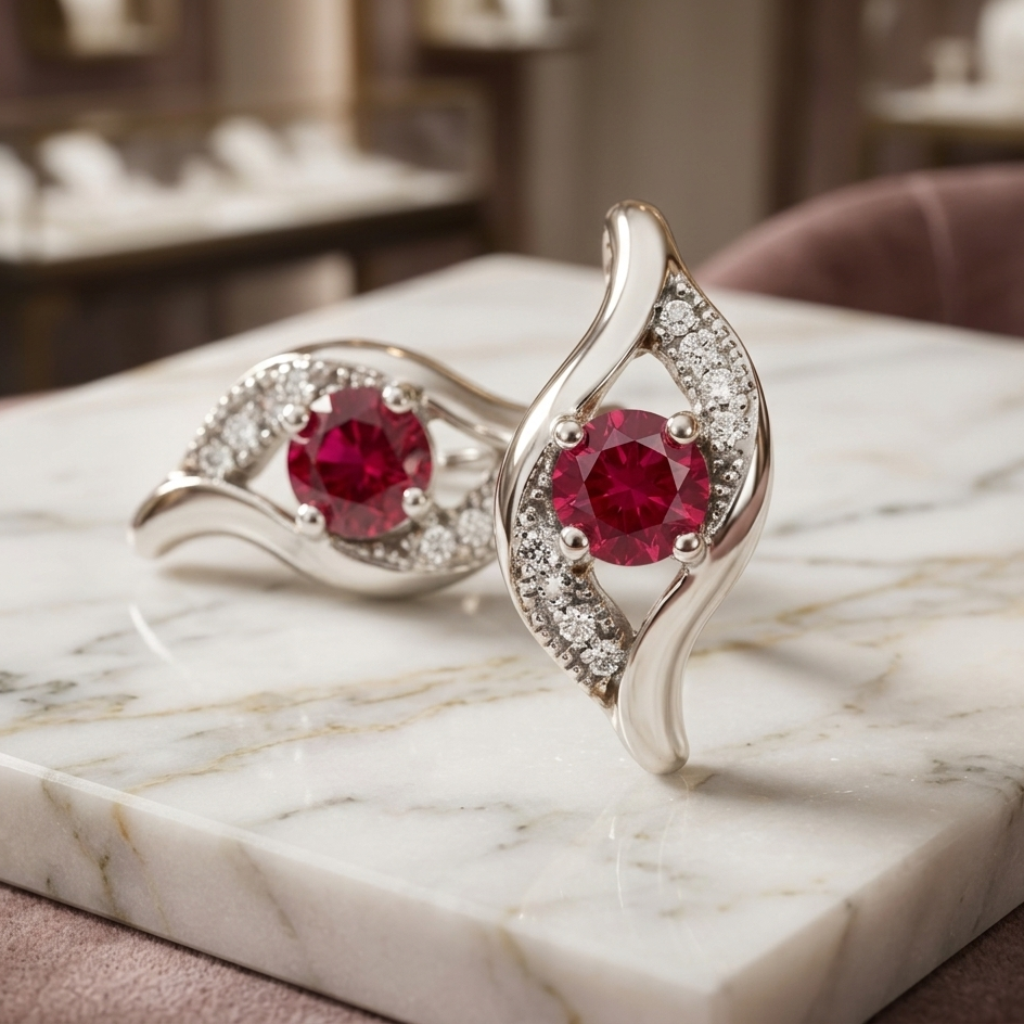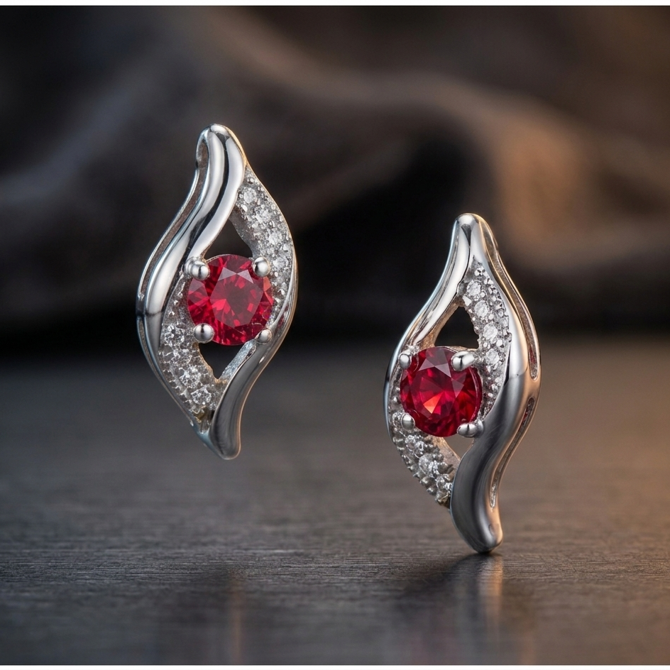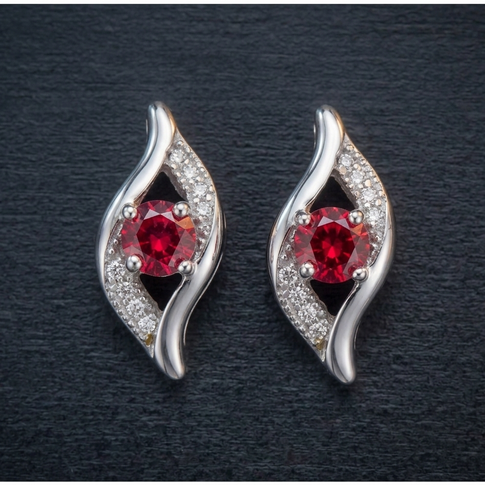 ต่างหูทรงกลมประดับทับทิมแดงขนาด 8 มม. ยาว 3 นิ้ว ประดับเพชร CZ เงินแท้ 925 ชุบทอง 18K ต่างหูแบบห้อย ดีไซน์โดดเด่น ราคาขายส่ง