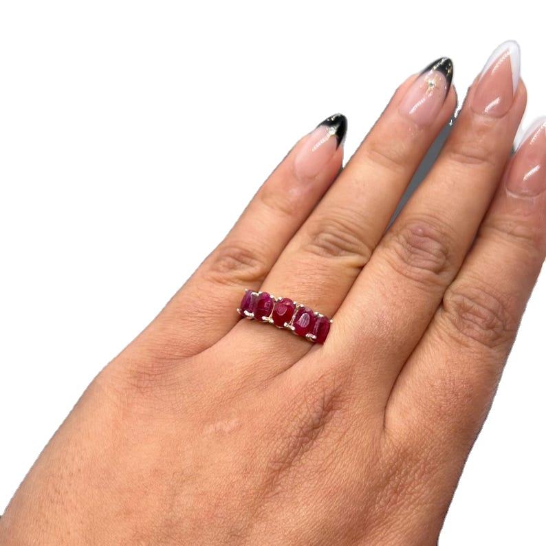 ศิลปะเพชรพลอยทับทิมแดงทรงรีตัดแหวนแฟนซี925เงินสเตอริ่งเพชรพลอยเหลี่ยมเพชรพลอยเครื่องประดับแฮนด์เมดสง่างาม