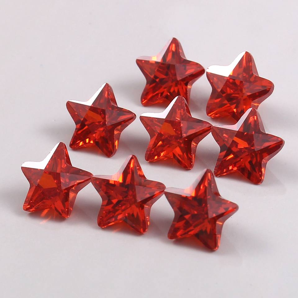 พลอยแซฟไฟร์สีแดงตัดรูปดาวอัญมณีหลวมสำหรับทำเครื่องประดับหินแซฟไฟร์เทียมสำหรับห้องปฏิบัติการขายส่ง