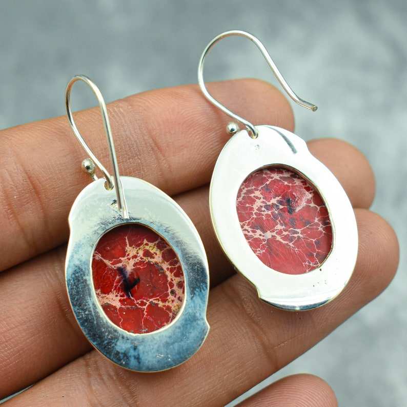 Red Sea Sediment Earrings 925 Sterling Silver Handmade Jewelry Gemstone Earrings Gift For Her