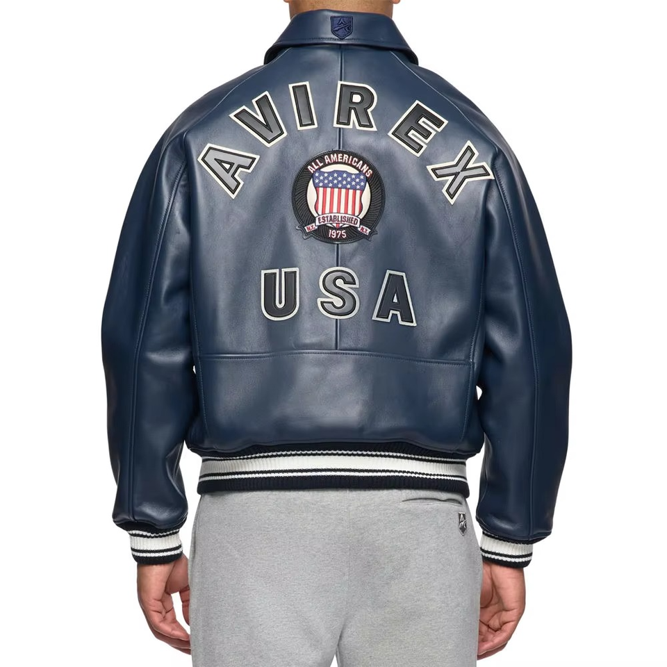 แจ็คเก็ตหนังแกะสีแดง Avirex รุ่นวินเทจสำหรับผู้ชาย กันลม ตกแต่งลายนูน ปักลาย 3 มิติ รุ่นลิมิเต็ดอิดิชั่น ซิปหนา