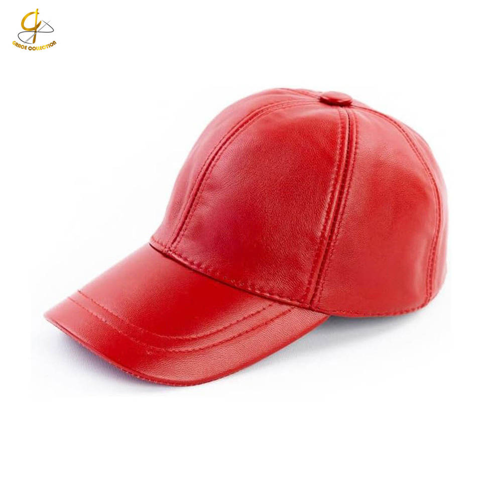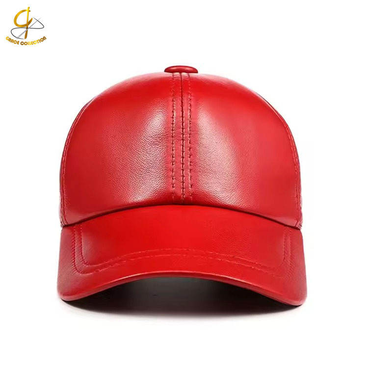 หมวกเบสบอลหนังผู้ชายสไตล์วินเทจสีแดงเงา 6 แผง ปรับขนาดได้ ระบายอากาศ กันน้ำ ปรับได้