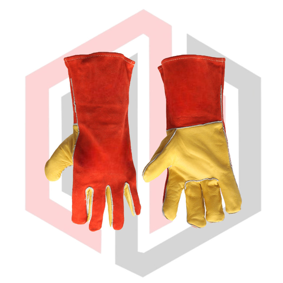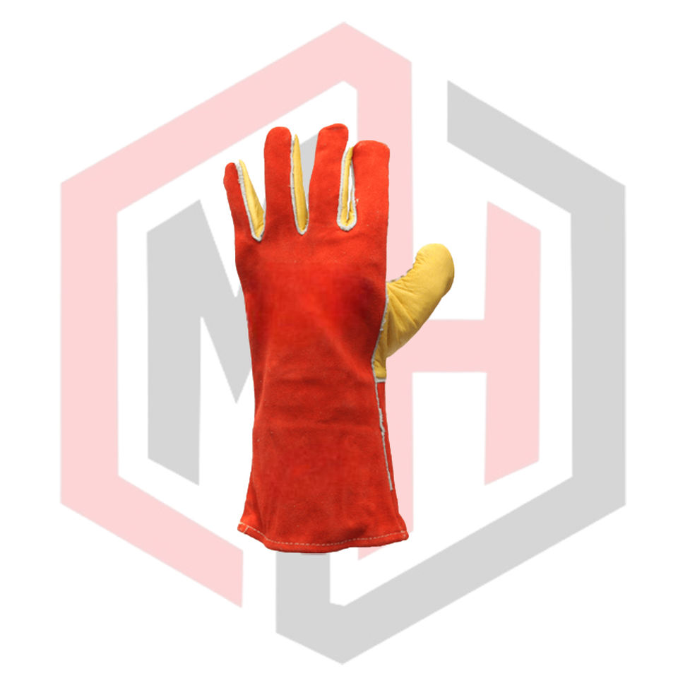ถุงมือหนังสีแดง ปราศจากซิลิโคน ปราศจากแป้ง ยืดหยุ่น ระบายอากาศได้ดี ขอบสีขาว ทนต่อการฉีกขาด ป้องกันความร้อน ถุงมือนิรภัย