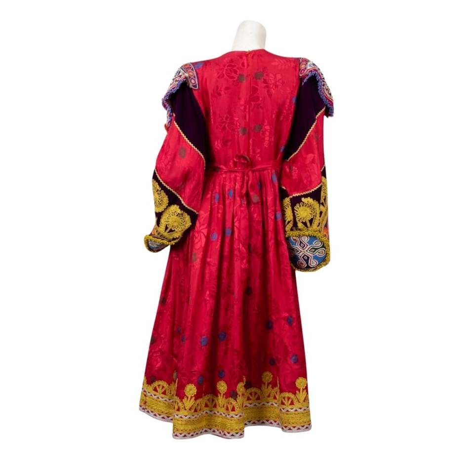 ชุดเดรสผ้าไหมสีแดงแบบอัฟกัน คูชี สำหรับสุภาพสตรี งานปักมือแบบดั้งเดิม สำหรับงานแต่งงานและงานเฮนน่า
