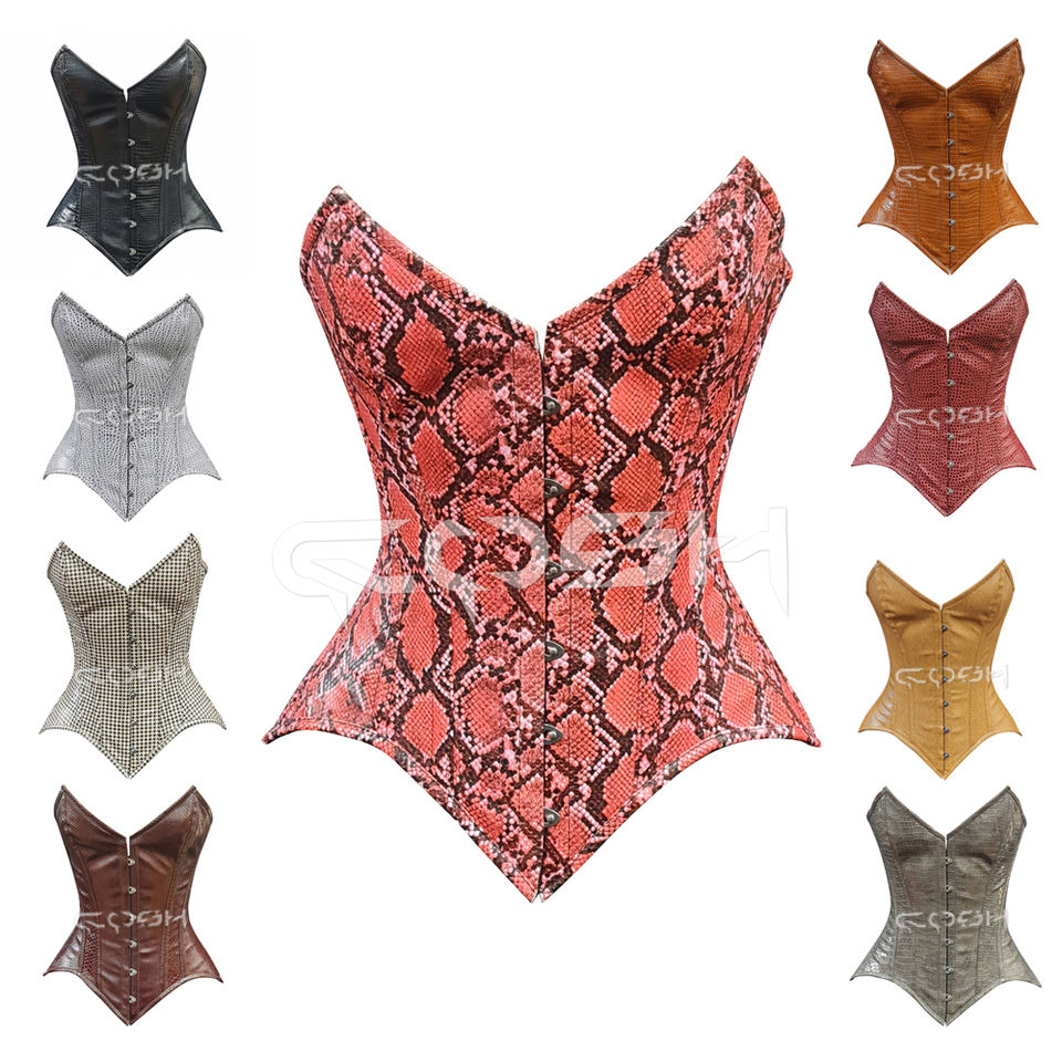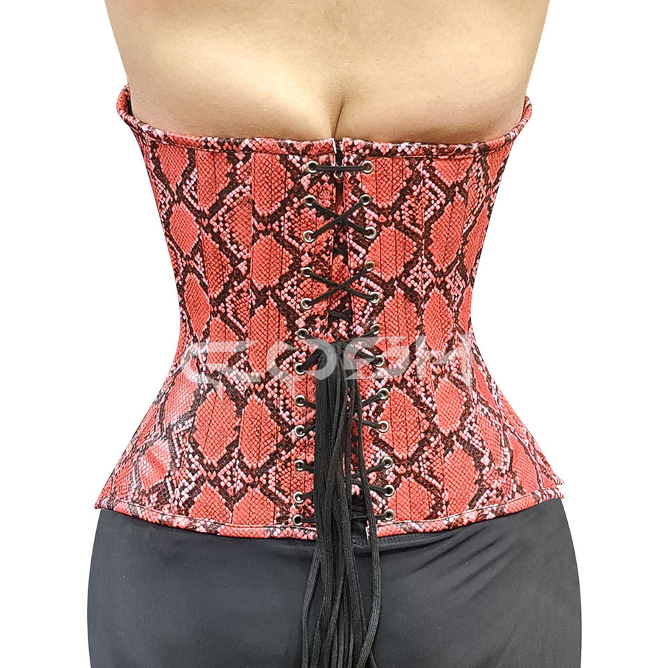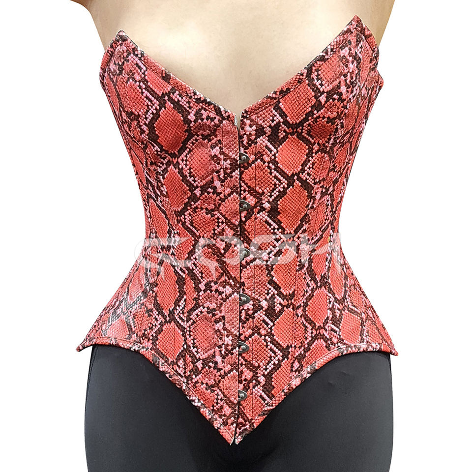 คอร์เซ็ททรงโอเวอร์บัสต์เสริมโครงเหล็ก วัสดุพีวีซีลายหนังงูสีแดง สำหรับแฟชั่นและงานปาร์ตี้