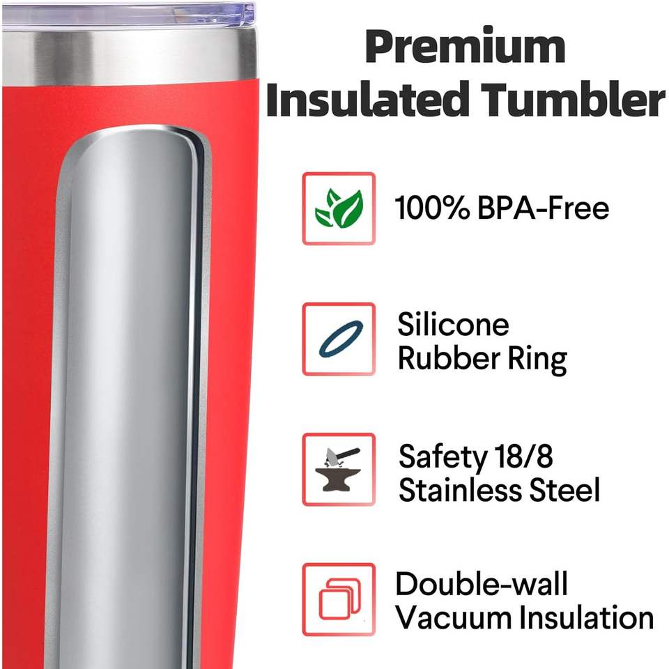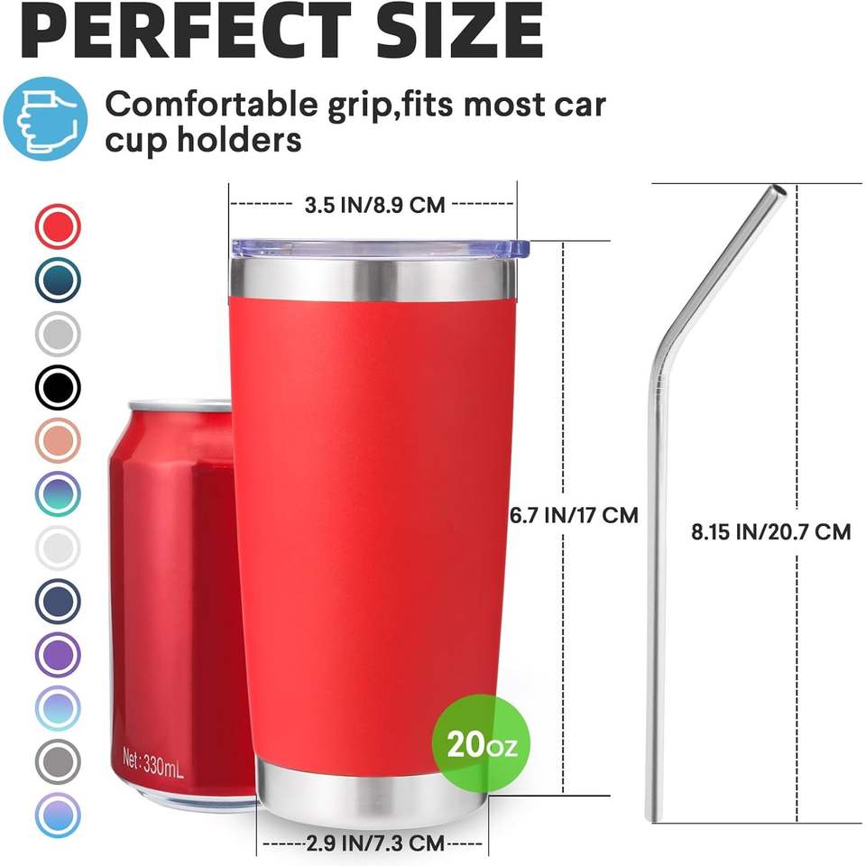 แก้วน้ำสแตนเลสสีแดง 20 ออนซ์ พร้อมฝาปิดและหลอดดูด แก้วเก็บความร้อนสองชั้น สำหรับกาแฟ ชา ใช้กลางแจ้ง นำกลับมาใช้ใหม่ได้ ปลอดสาร BPA