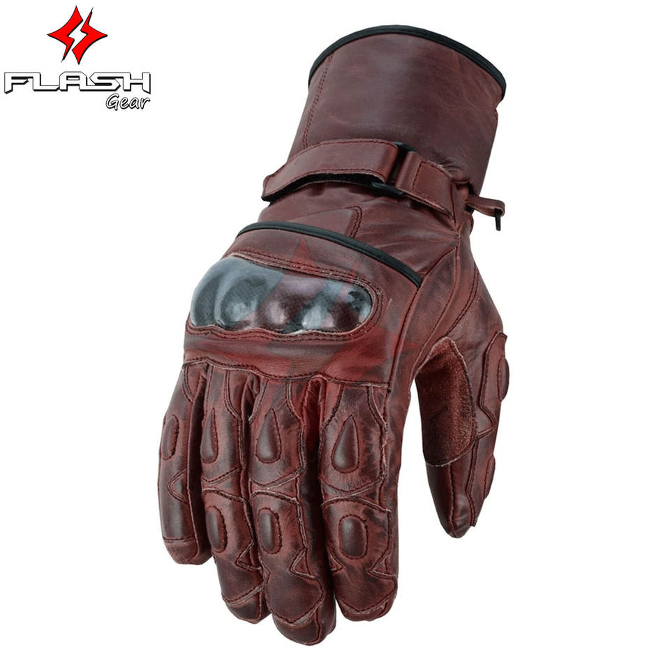 ถุงมือมอเตอร์ไซค์หนังแท้สีแดงใช้ได้ทั้งชายและหญิงกันน้ำได้เต็มนิ้วถุงมือป้องกันฝ่ามือมีห่วงปิดสำหรับแข่งรถกลางแจ้ง