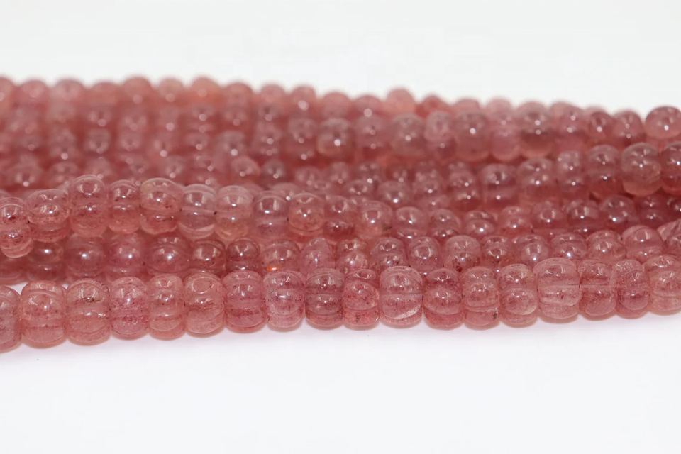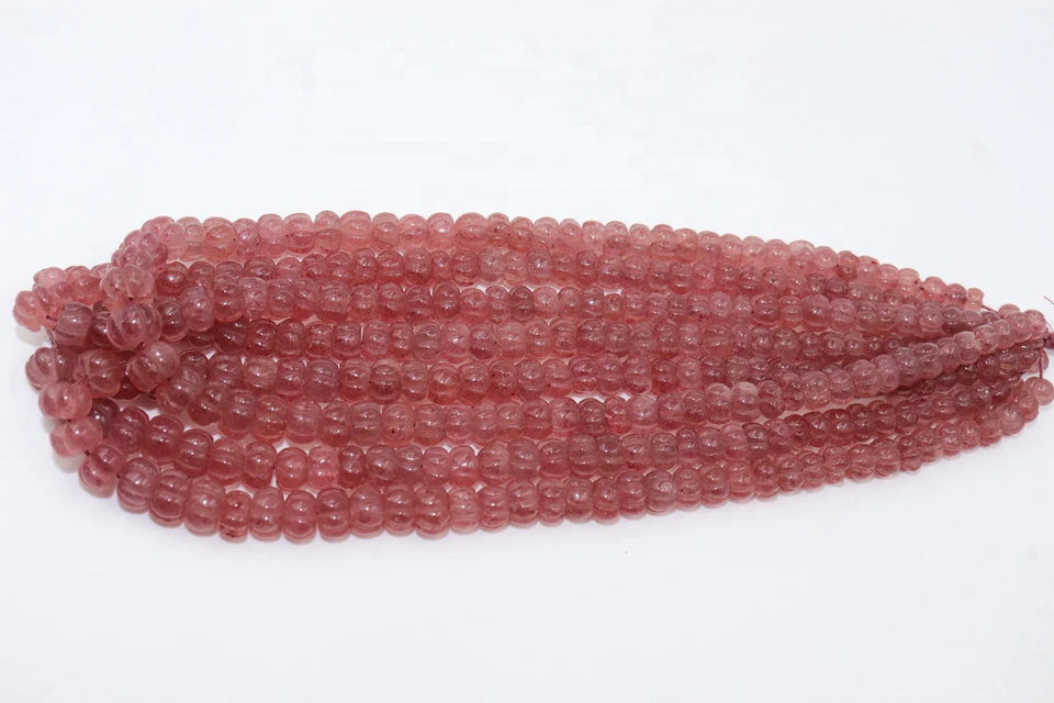 Name:Red Strawberry Quartz Melon Shape Smooth Carved Rondelle Shape Beads