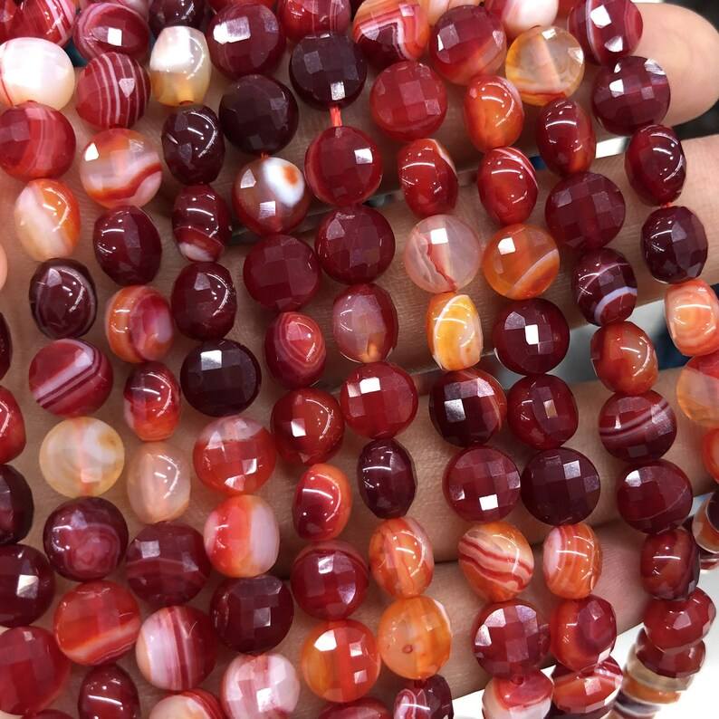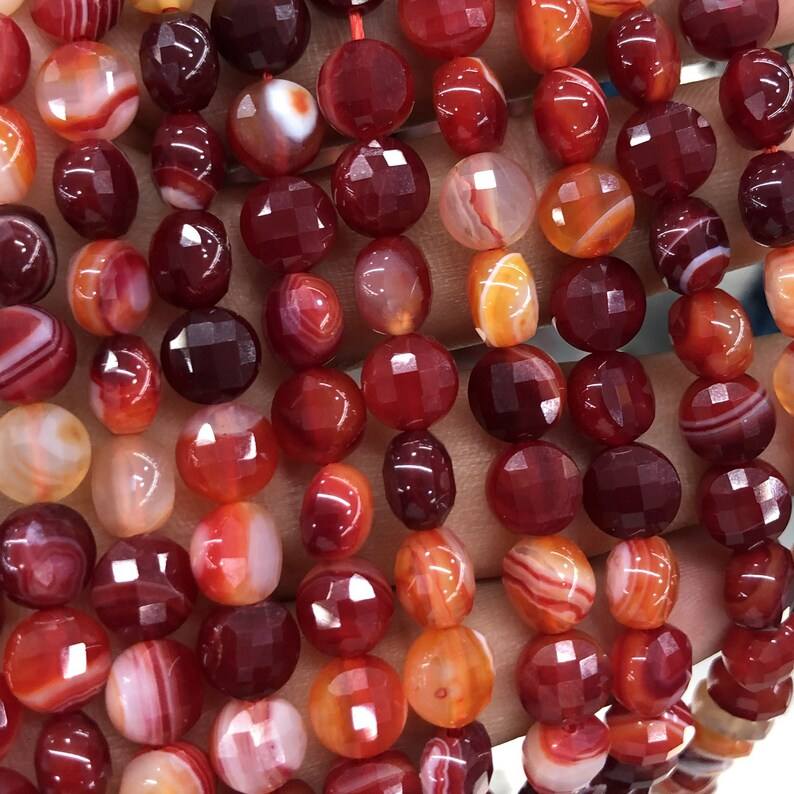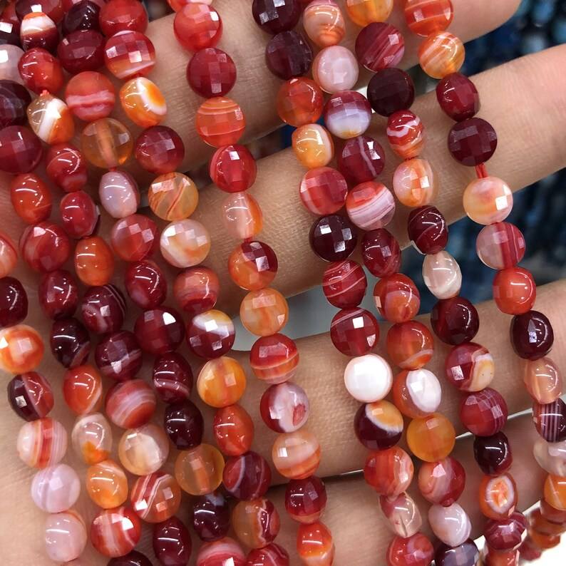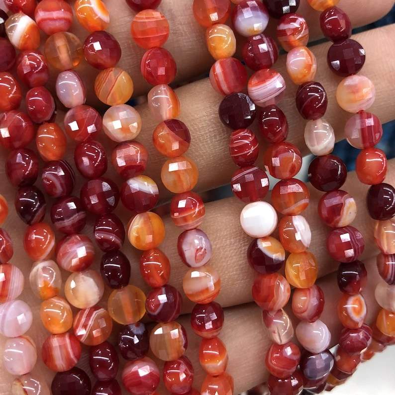 ลูกปัดหินอาเกตลายแดงทรงกลมเจียระไน ลูกปัดพลอยธรรมชาติสำหรับทำเครื่องประดับ งานฝีมือ DIY ขายส่ง