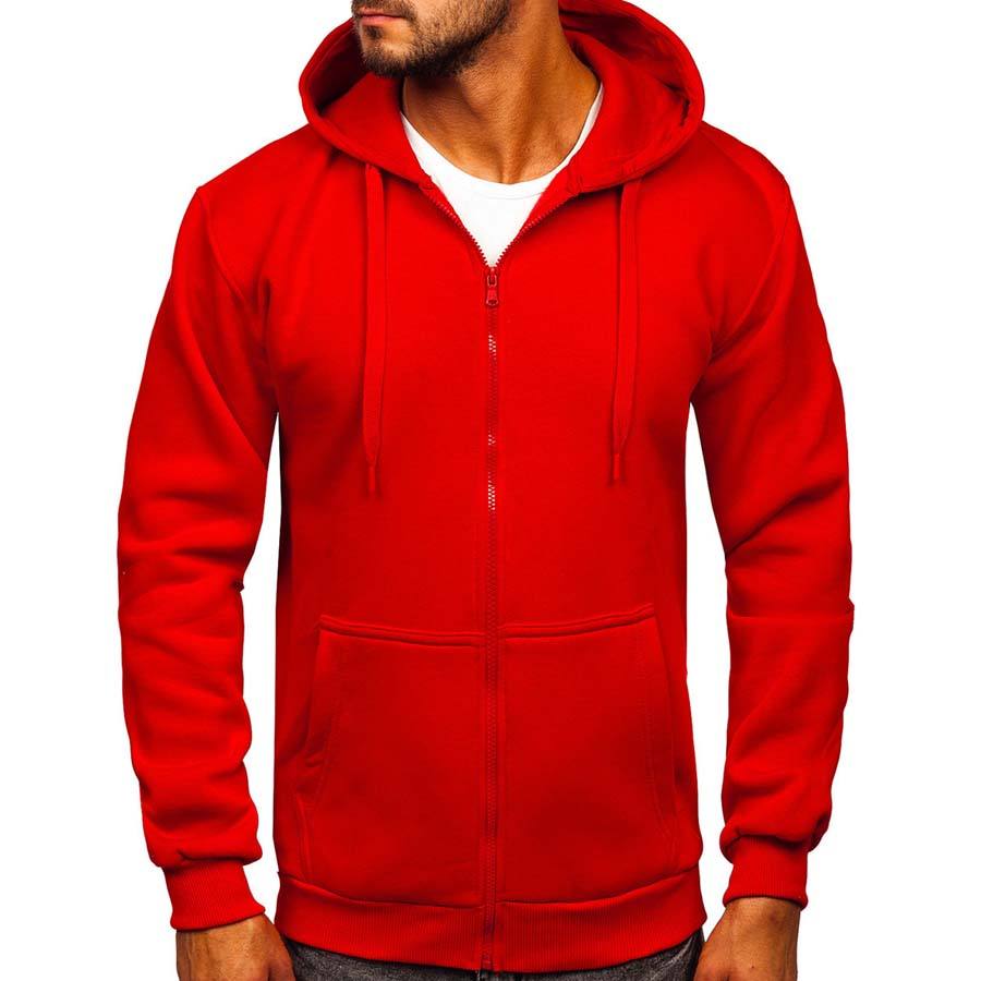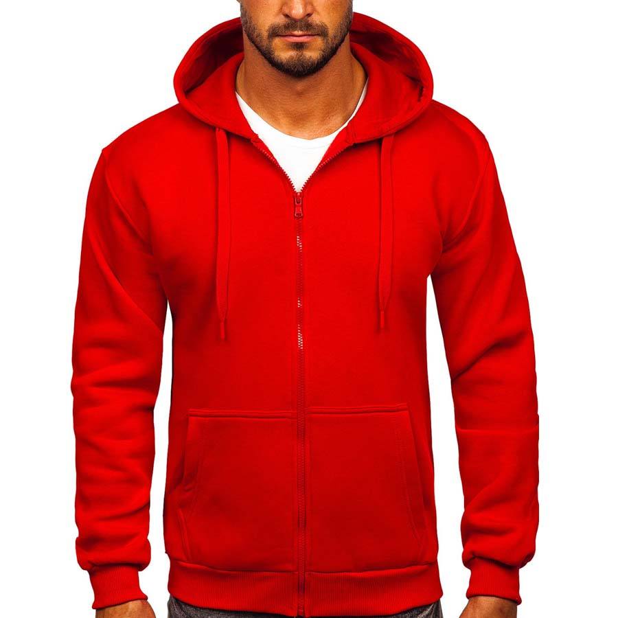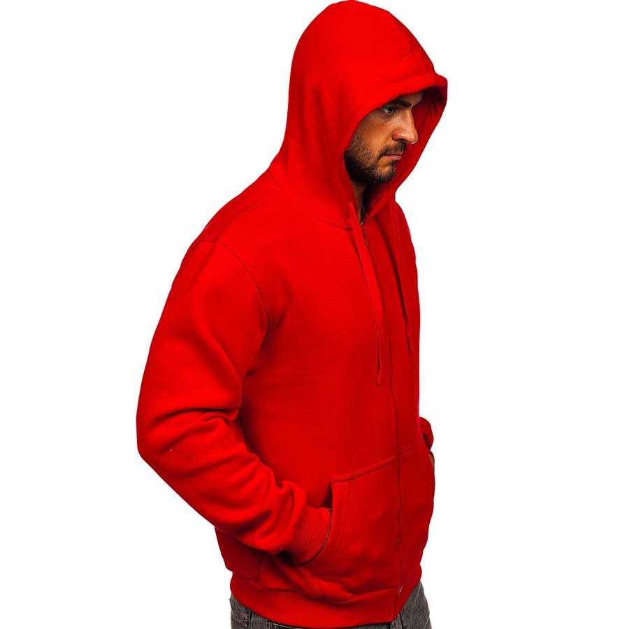 เสื้อฮู้ดกันลมแบบซิป สีแดง แขนยาว ลายเรียบ ปักโลโก้ได้ ผลิตจากผ้าฝ้ายฟลีซ 100% อุ่นสบาย