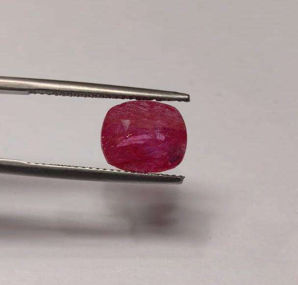 พลอยทับทิมธรรมชาติพม่าสีแดง ไม่ผ่านการอบอุ่น รูปทรงคุชชั่น สำหรับทำแหวนหรือจี้ (ใช้ในโหราศาสตร์)