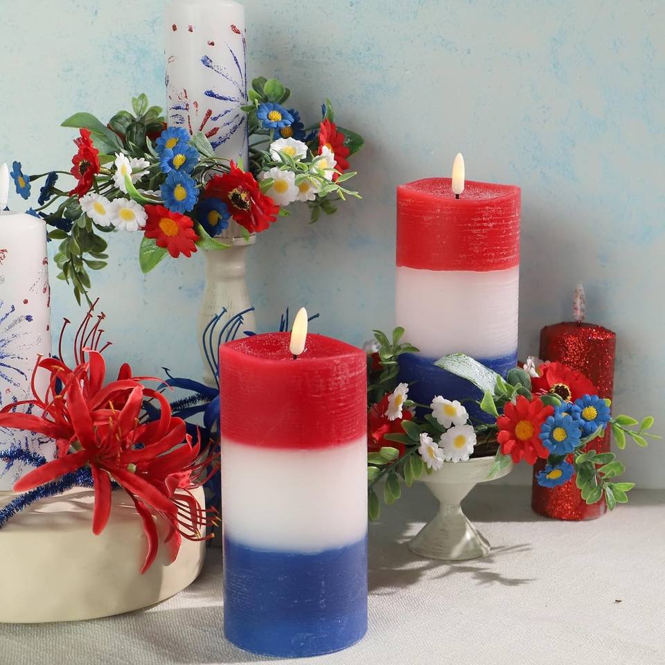 เทียนหอมรูปทรงเสา สีแดง ขาว น้ำเงิน สำหรับวันชาติอเมริกา ของขวัญวันหยุด ทำด้วยมือจากขี้ผึ้งถั่วเหลือง