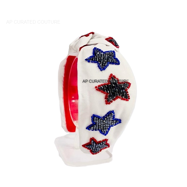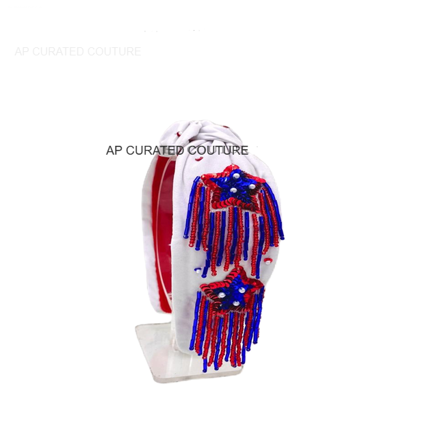 ที่คาดผมประดับด้วยลูกปัดสีแดงสีขาวสีฟ้าที่ไม่เหมือนใครสำหรับงานเฉลิมฉลอง4th
