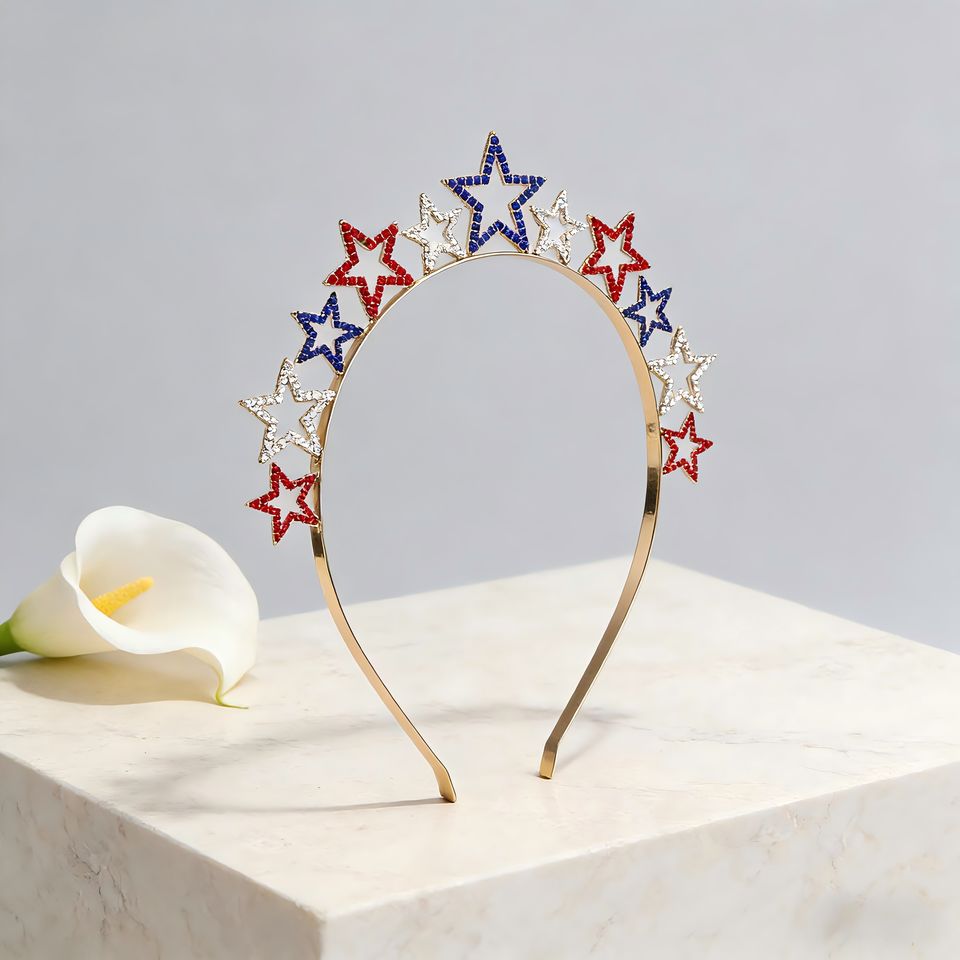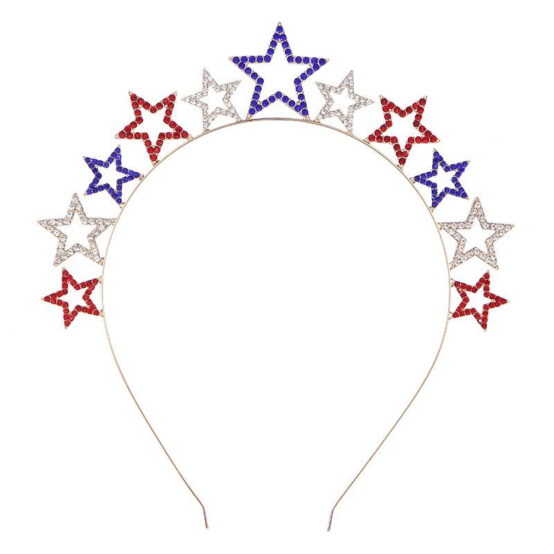 ที่คาดผมมงกุฎประดับดาวรูปดาวอเมริกันสีแดง ขาว น้ำเงิน ประดับคริสตัลวิบวับ