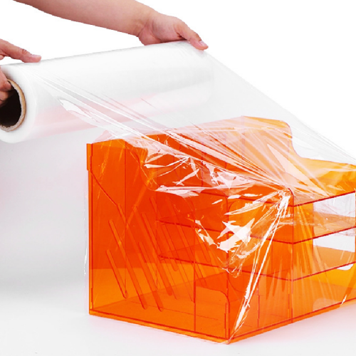 ฟิล์มยืดพิมพ์ลาย LLDPE ฟิล์มยืดพาเลทสีขาวน้ำเงินแดง
