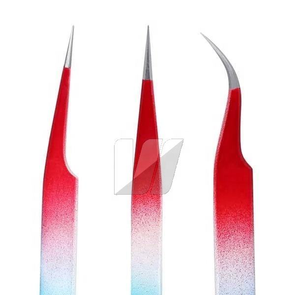 แหนบคริสมาสต์สีแดงขาวแบบยั่งยืนแหนบต่อขนตาสแตนเลสแหนบสำหรับการต่อขนตามืออาชีพ
