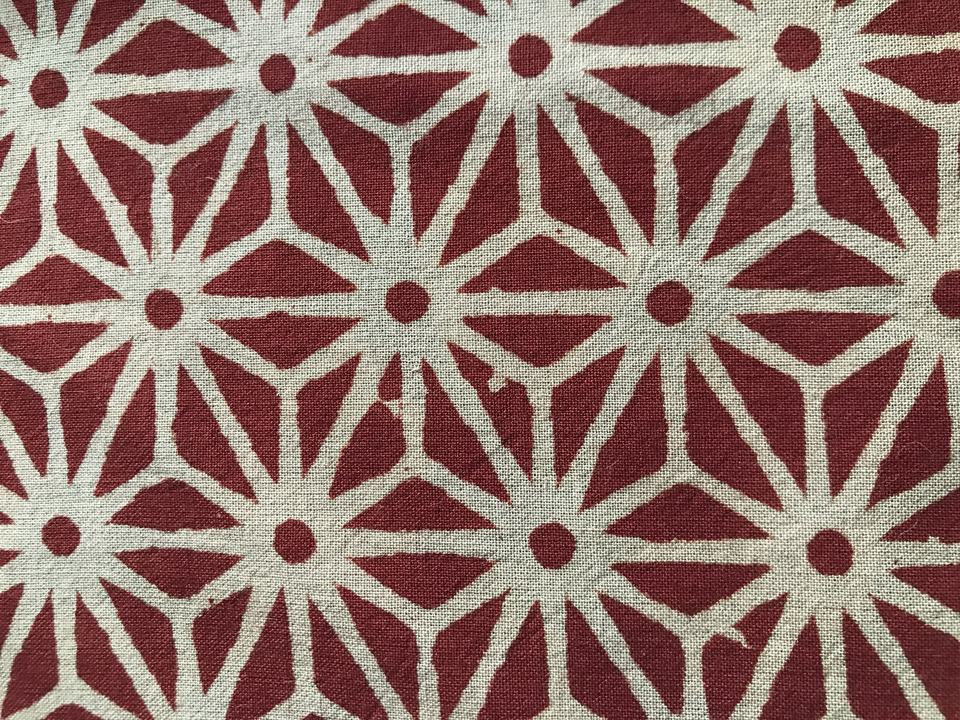 ผ้าฝ้ายพิมพ์ลายบล็อกสีแดงขาว – ลายดาวเรขาคณิตแบบตาข่าย ผ้าฝ้ายอินเดียสำหรับชุดเดรสและเครื่องแต่งกาย