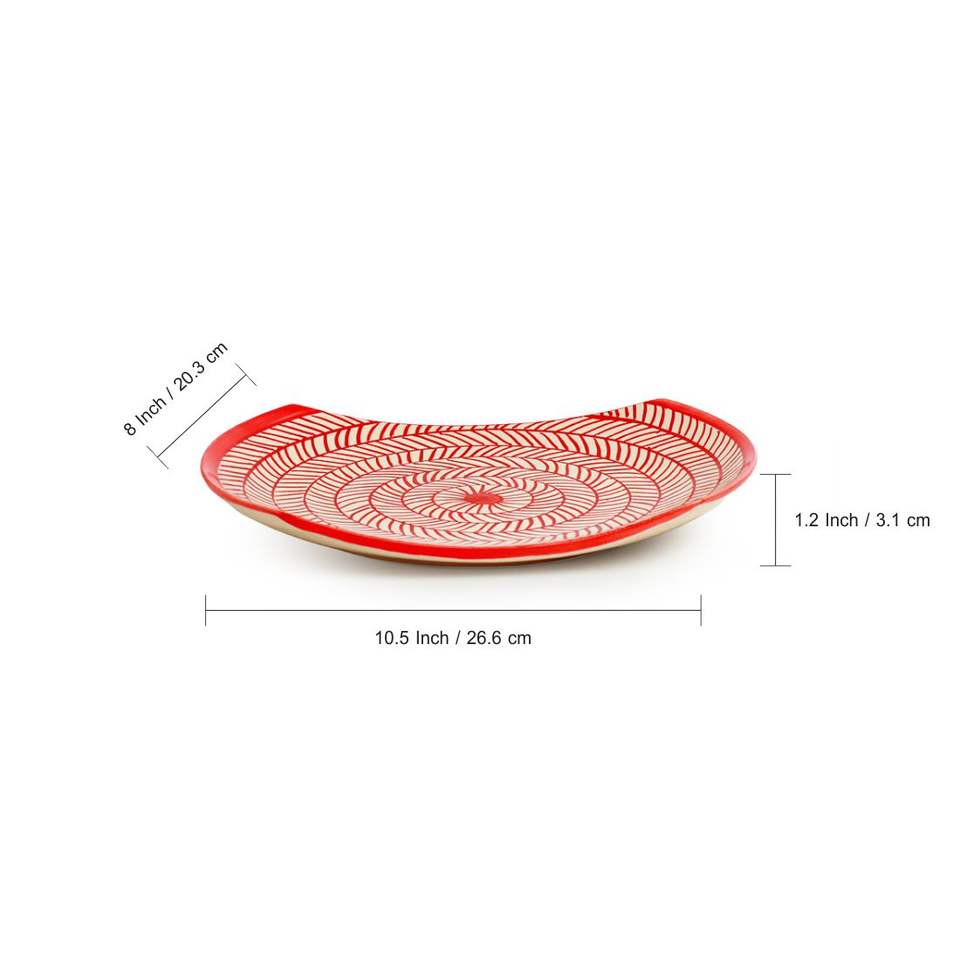 Set of 4 Modern Hand-Painted Red & White Ceramic Serving Platters for Weddings and Diwali Festivities