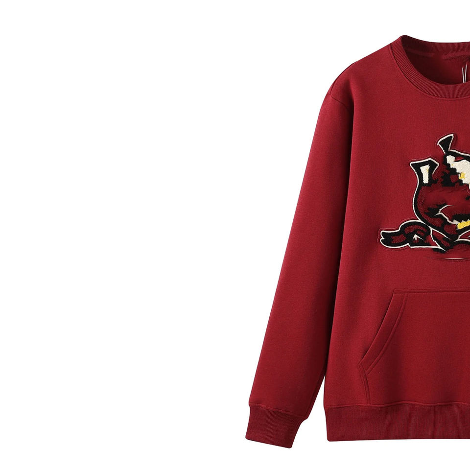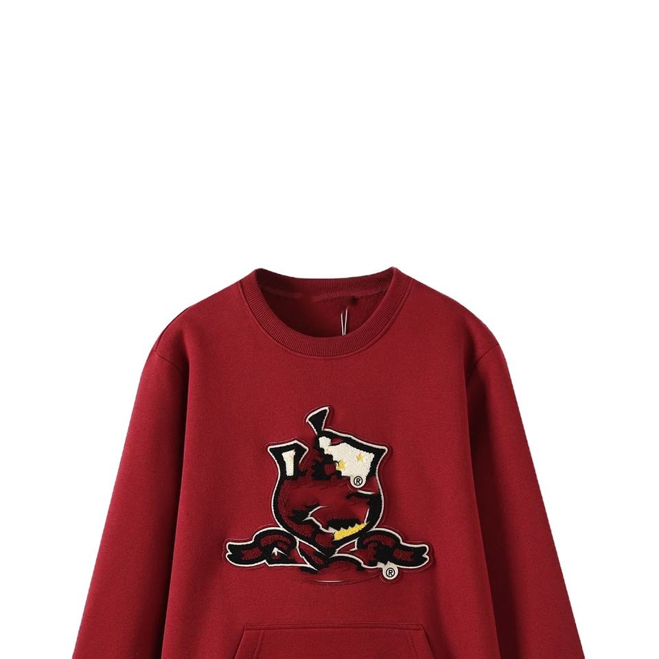 เสื้อสเวตเชิ้ตคอกลมสีแดงขาว ลายตัวอักษร มหาวิทยาลัย ทรงปกติ สตรีทแวร์ ฤดูหนาว ปักโลโก้ด้านหน้าตามสั่ง